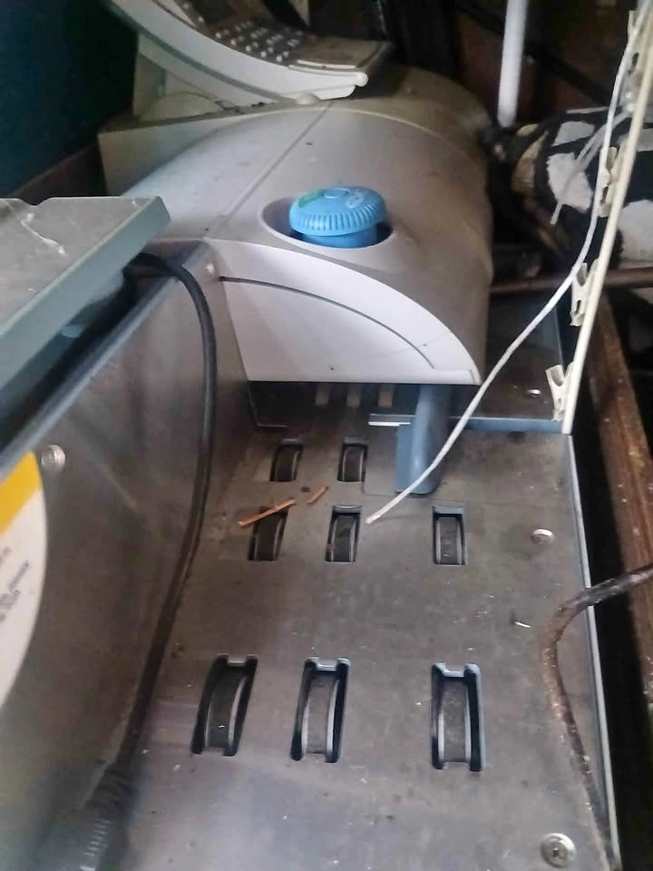 Pitney Bowes DM800 Digital Mailing System. Feeds mail, seals, and imprints postage. Detaches into 3 main sections as well as the stacker on the right side. The optional middle section is called the Weigh-On-The-Way Module that automatically weighs mail. The system can be used with this section taken out and the external scale used. This is also capable of using an external printer. It's missing the IntelliLink Control Center that plugs into the top of the right section so unable to test this but everything seems intact with all the necessary cords including the IntelliLink power cord. Find a Control Center and put it to work or just use it for parts. With all the sections its about 68" long.
