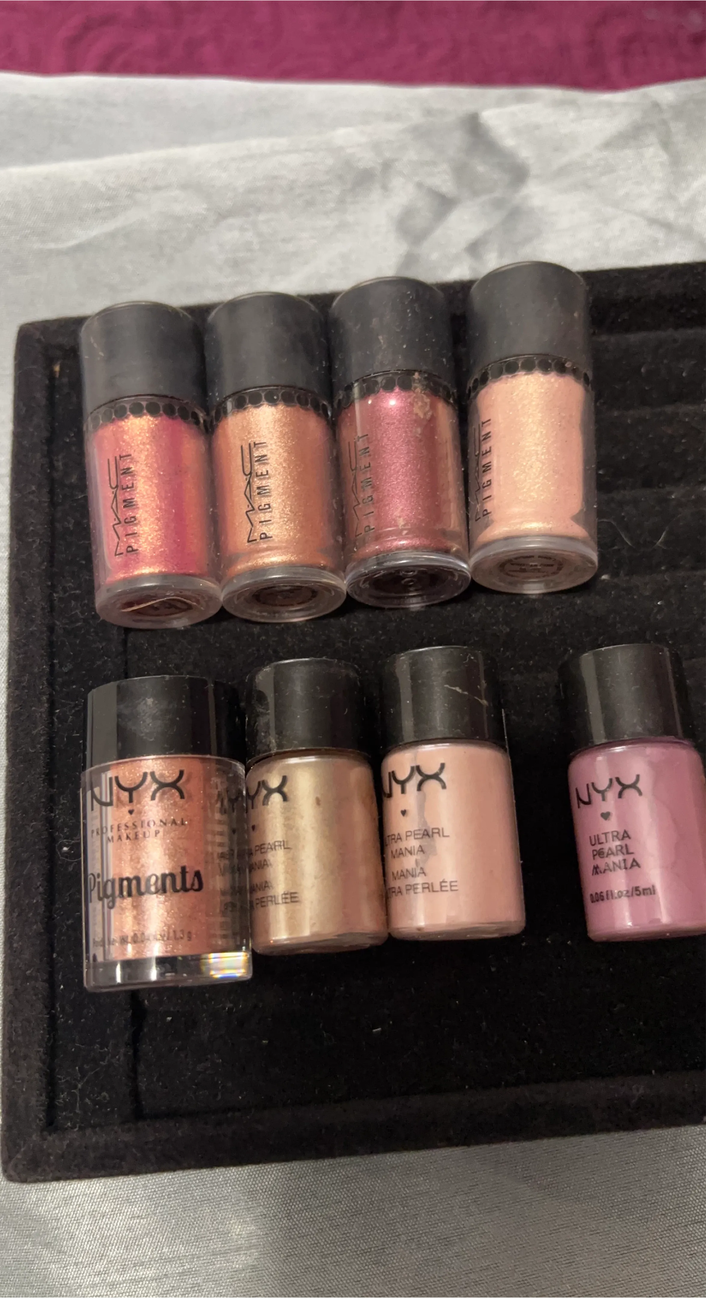 Selling a collection of pigments from MAC and NYX! These are great for adding some shimmer and colour to your makeup looks. You'll get a variety of shades to play with. Perfect for anyone who loves experimenting with makeup!