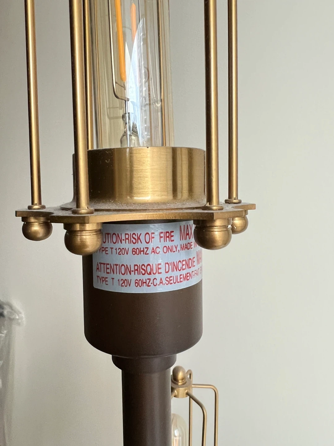 Brass cage exposed edison style light bulbs 120V 60HZ.