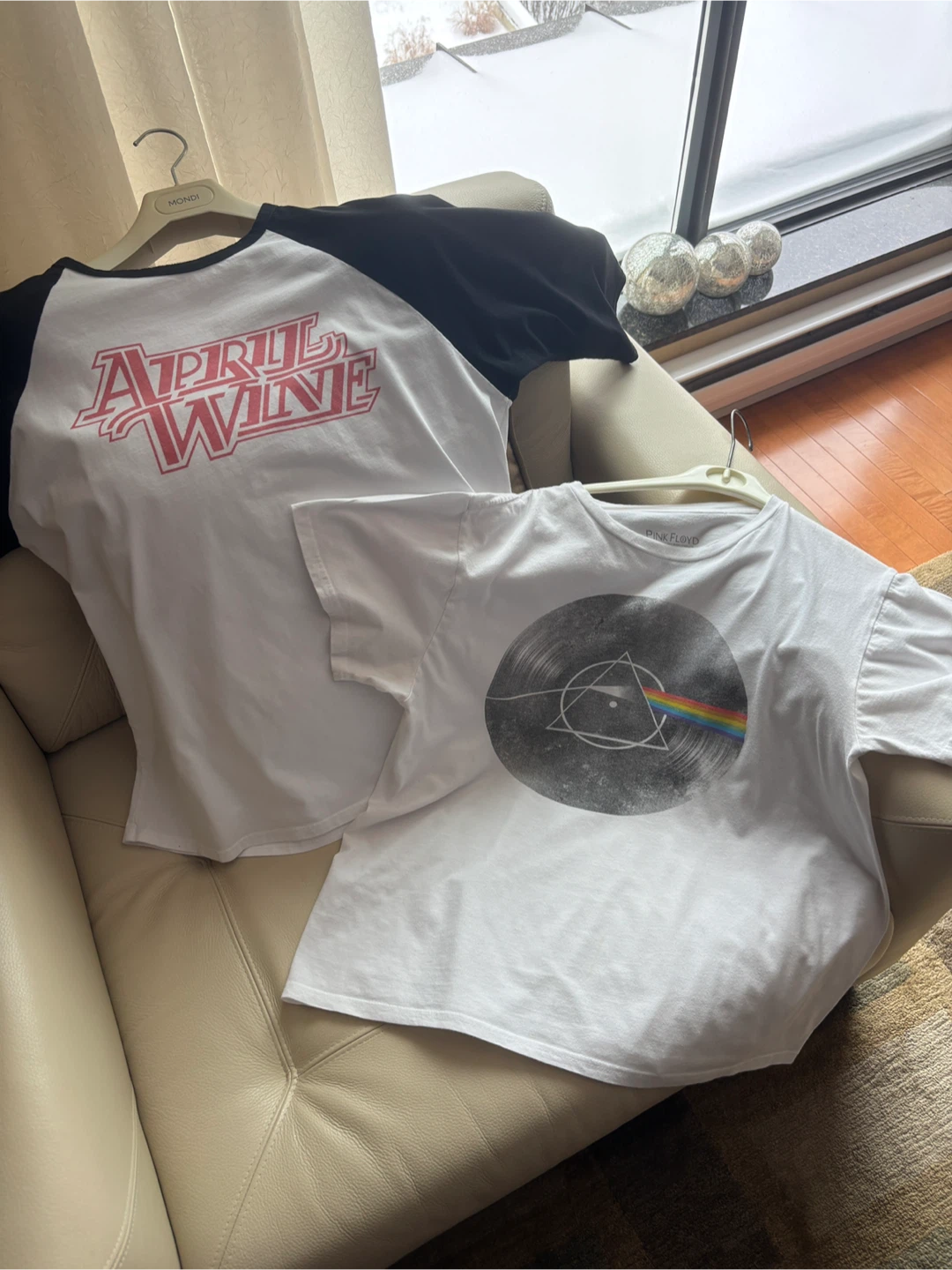 Two cool t-shirts for sale! One is a Pink Floyd tee, and the other is an April Wine tee. Both are size L and in great condition! Freshly laundered and pressed. No holes or rips.