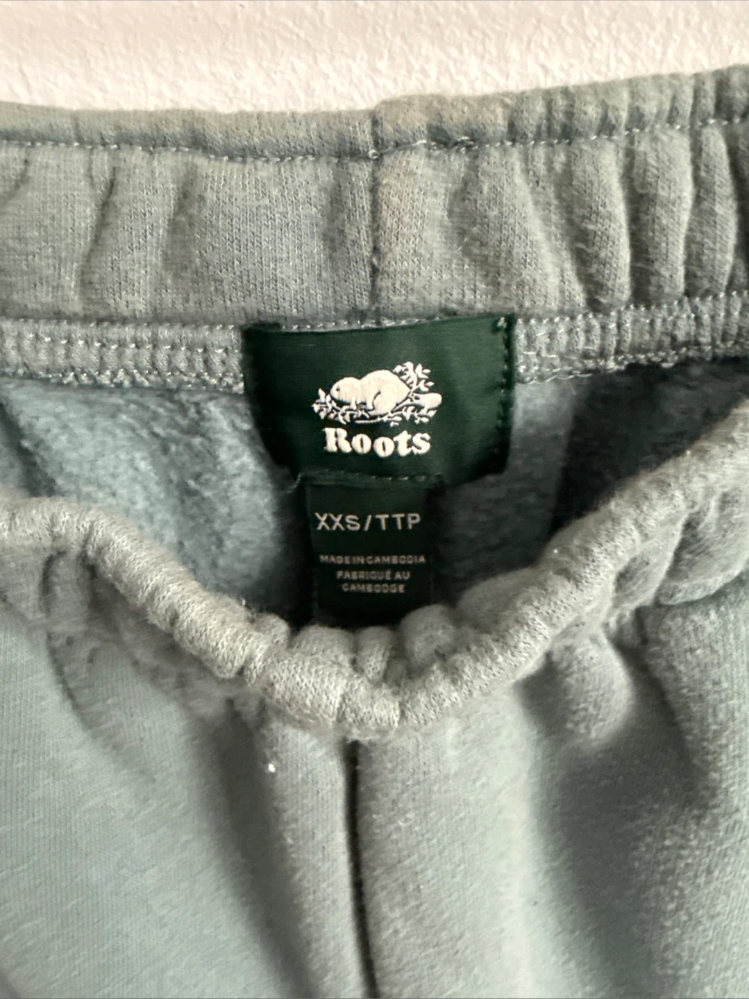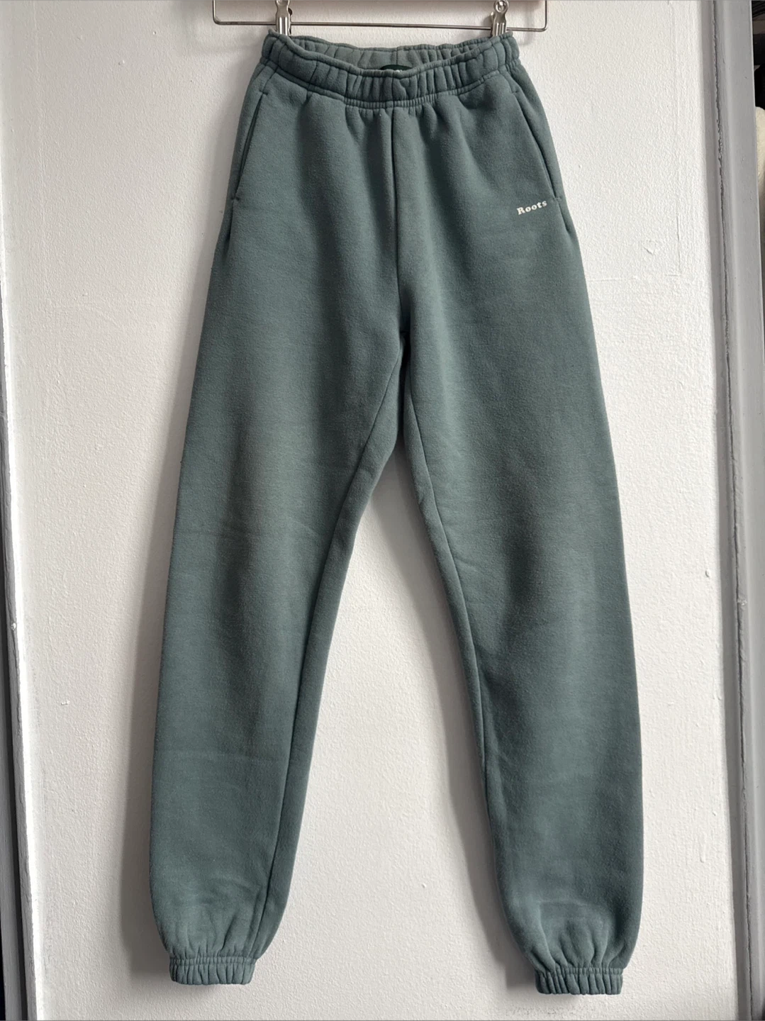 Selling a pair of Roots sweatpants in size XXS/TTP. They're in great condition and ready for a new owner. The colour is a lovely muted green, perfect for lounging or running errands