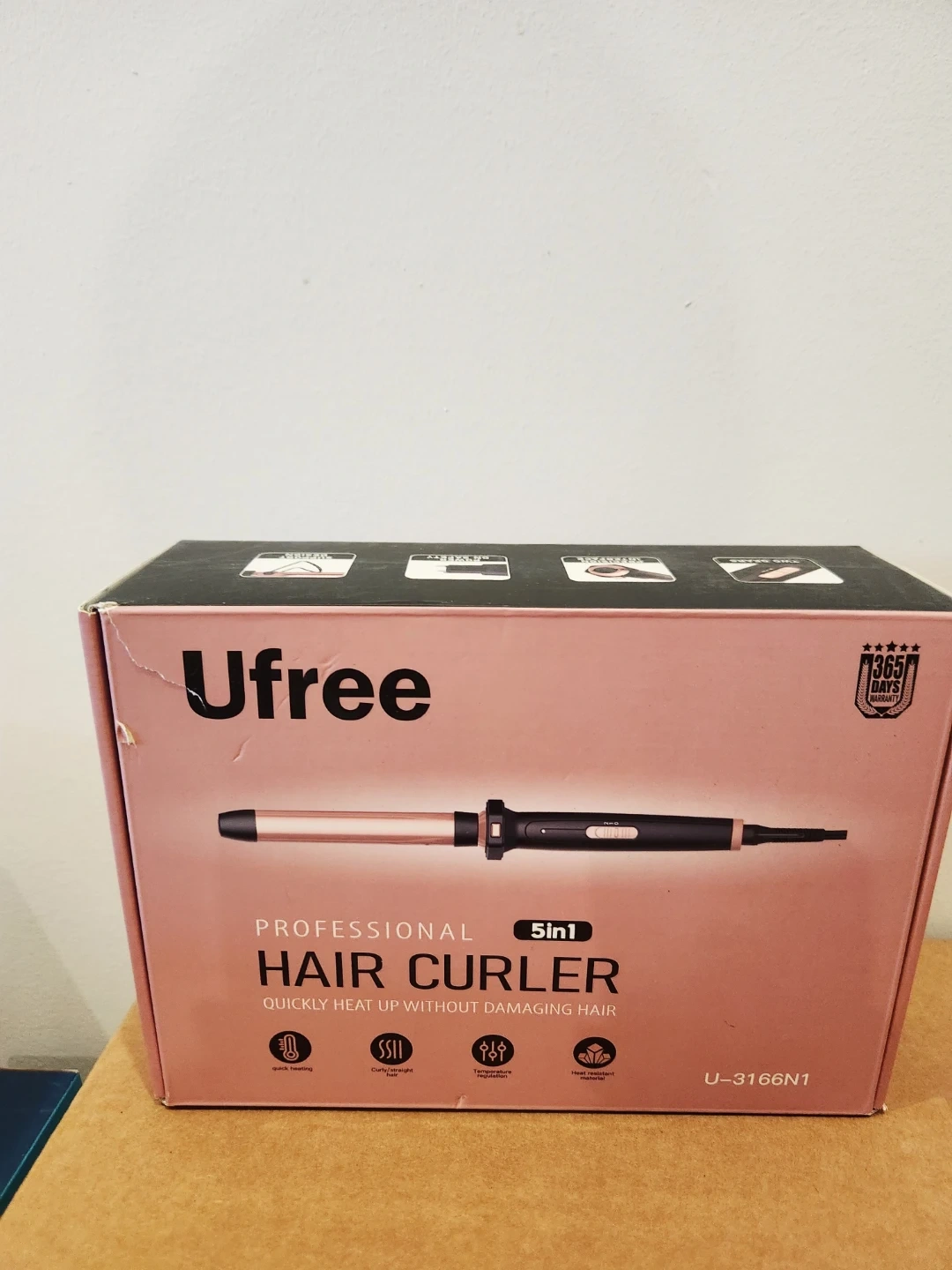 Selling a brand new Ufree 5in1 professional hair curler! It quickly heats up without damaging your hair. Comes in the original box.