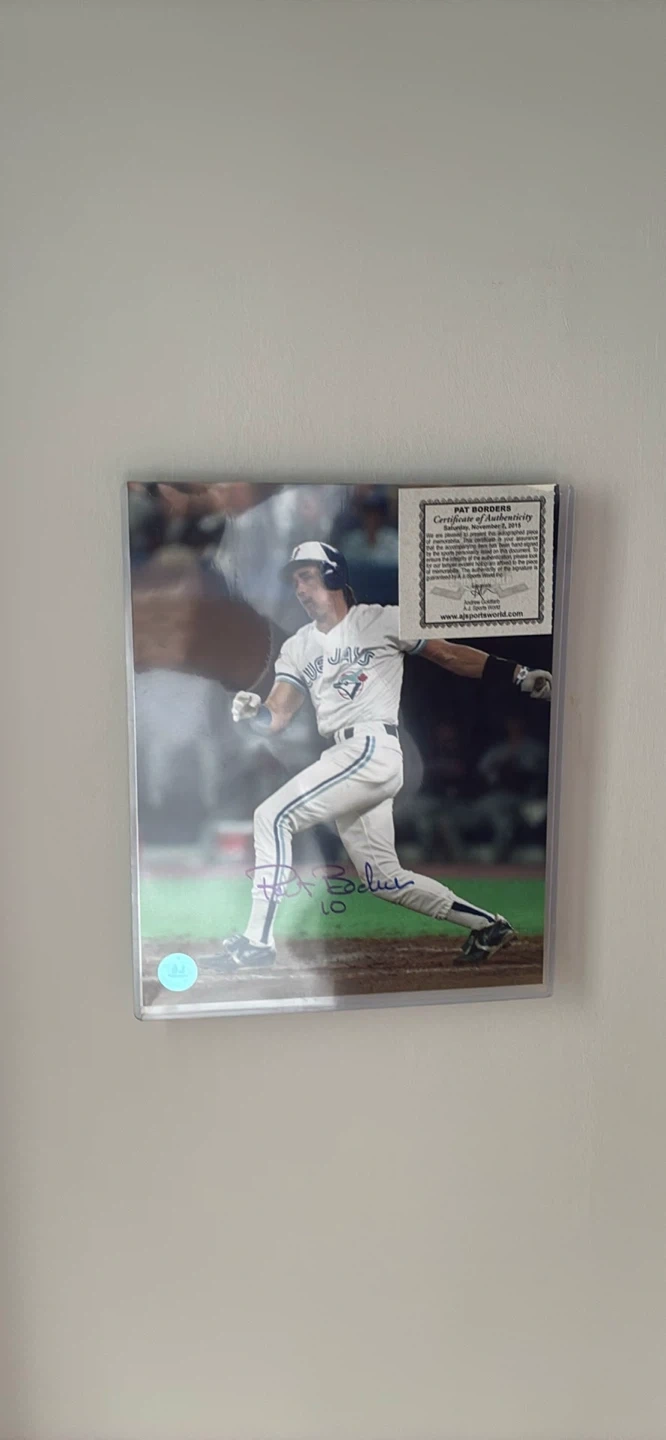 Get these two autographed blue jays photos of George bell and Pat borders that contain certificates of authentication both for $75