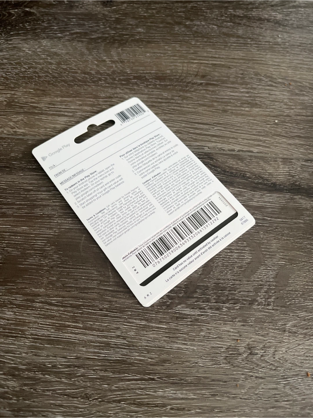 Buy & SellGoogle Play $25 Giftcard, activatedGoogle Play $25 Giftcard, activated$20Selling a Google Play giftcard worth $25!WHERE TO MEETCheck LocationView MapSELLERJinBlake Jones84694 reviews1 chats·1 favorites·20 viewsSEND CHAT TO SELLERHi Jin! I’m interested in your listing.Hi Jin! I’m interested in your listing.Get the Karrot app to chatSign In to chat
