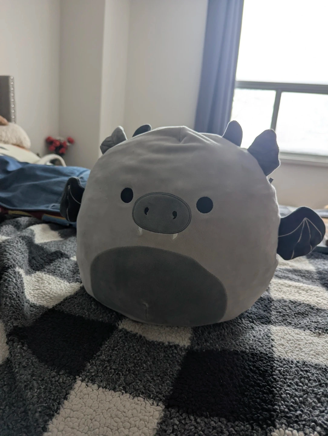 Selling a cute grey bat Squishmallows plush! It's in great condition and ready for a new home. This plush is super soft and cuddly, perfect for anyone who loves Squishmallows or bats