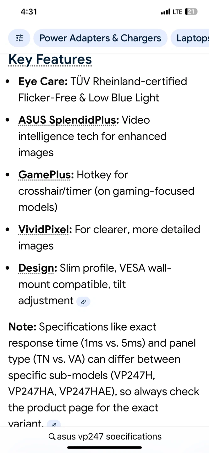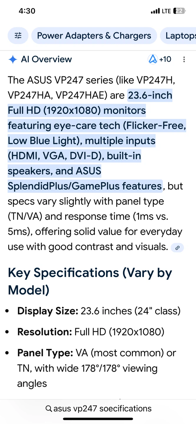 Selling an ASUS VP247 series monitor! It's a 23.6-inch Full HD (1920x1080) monitor featuring eye-care tech, including Flicker-Free and Low Blue Light. It also has multiple inputs (HDMI, VGA, DVI-D) and built-in speakers. The box is included!