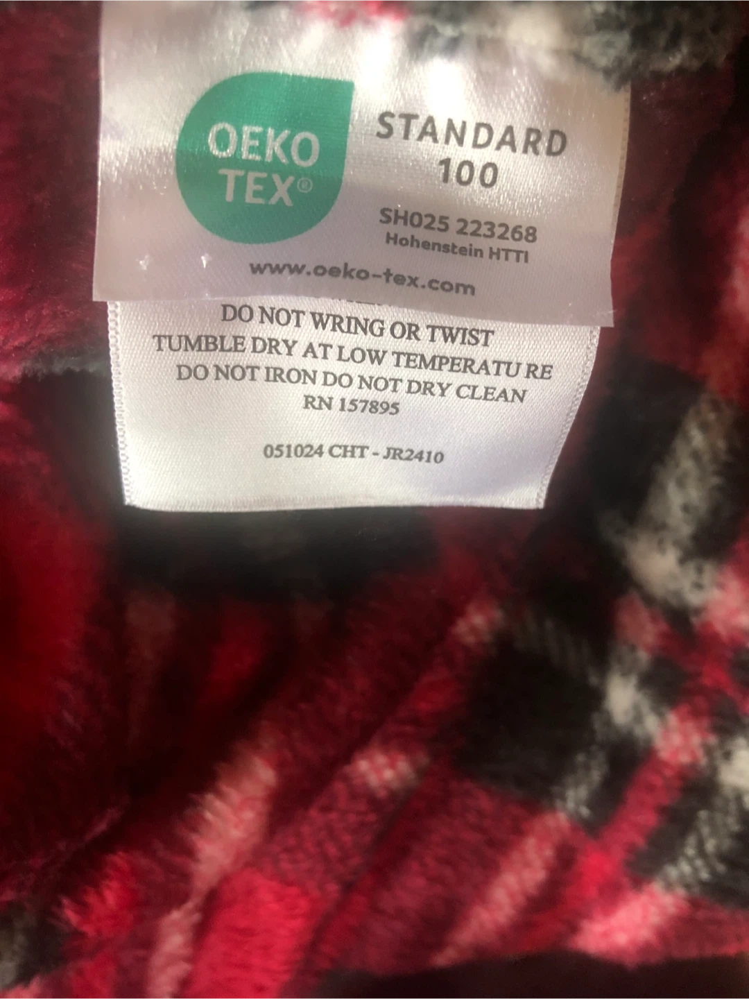 Snuggle up with this cozy red plaid fleece throw blanket! The tag indicates it's certified STANDARD 100 by OEKO-TEX, so you know it's safe and gentle. Perfect for adding a touch of warmth and style to your home