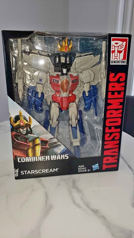 Selling 1 Transformers Combiner Wars Leader Class Starscream from 2015. Brand New Mint Sealed on Box, stored away for safe keeping and for collection. From a pet and smoke free home. Everything seems to be perfect with a few blemishes around the box. Box itself is in great shape.