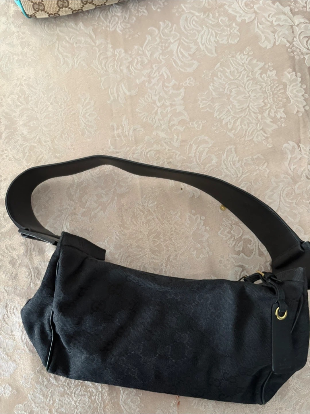 Selling a Gucci shoulder bag in black canvas! It's in great condition and ready for a new owner. Perfect for everyday use!