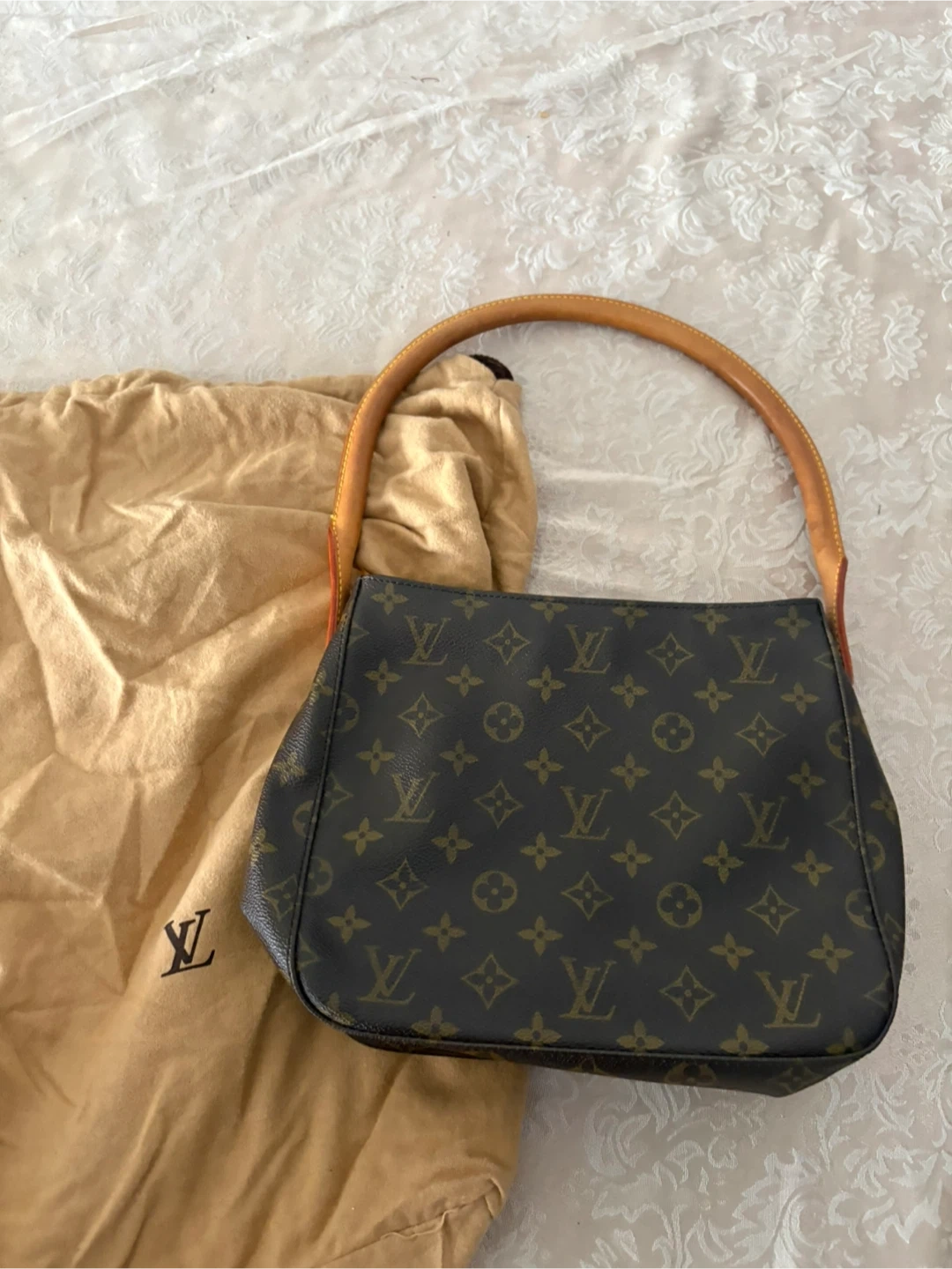 Selling a Louis Vuitton handbag in the classic monogram canvas. It comes with its original dust bag to keep it protected when stored. It's a stylish and timeless piece!