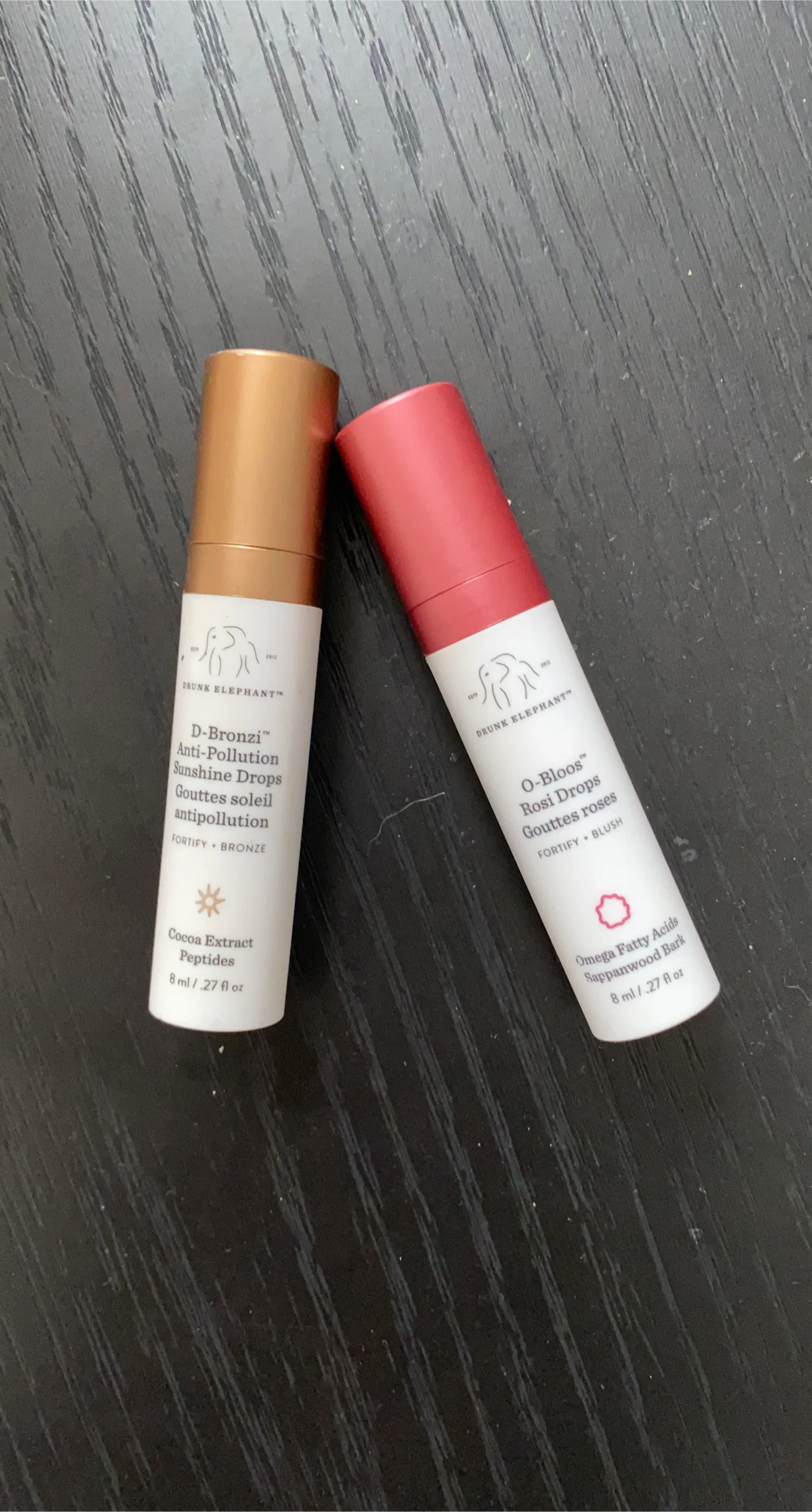 Selling a pair of Drunk Elephant drops! You'll get both the D-Bronzi Bronzer Drops and the O-Bloos Rosi Glow Drops. Each bottle contains 8 ml / .27 fl oz