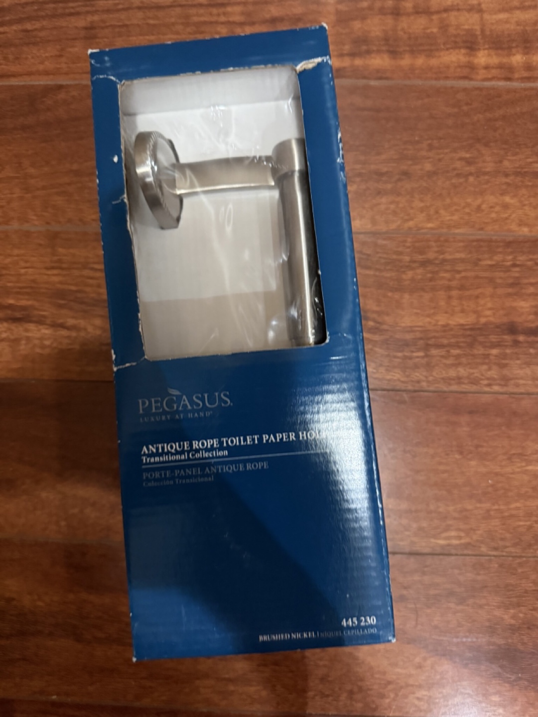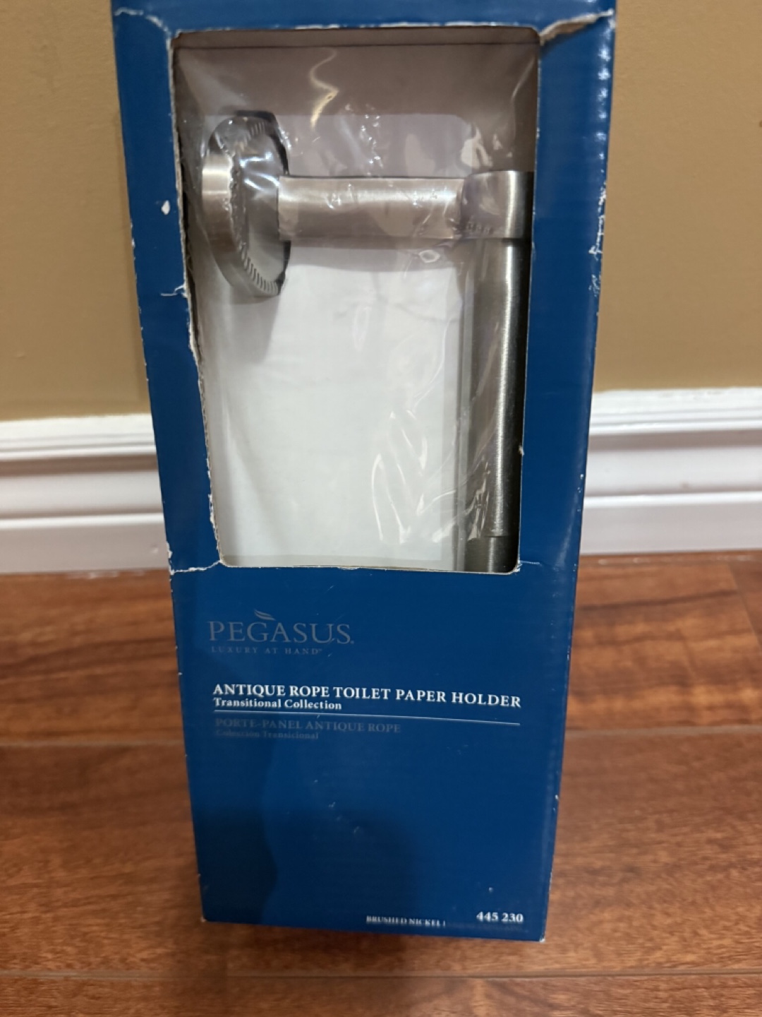 Selling a brand new Pegasus Antique Rope Toilet Paper Holder, still in its original packaging! It's from the Transitional Collection and features a beautiful brushed nickel finish. A stylish and functional addition to any bathroom