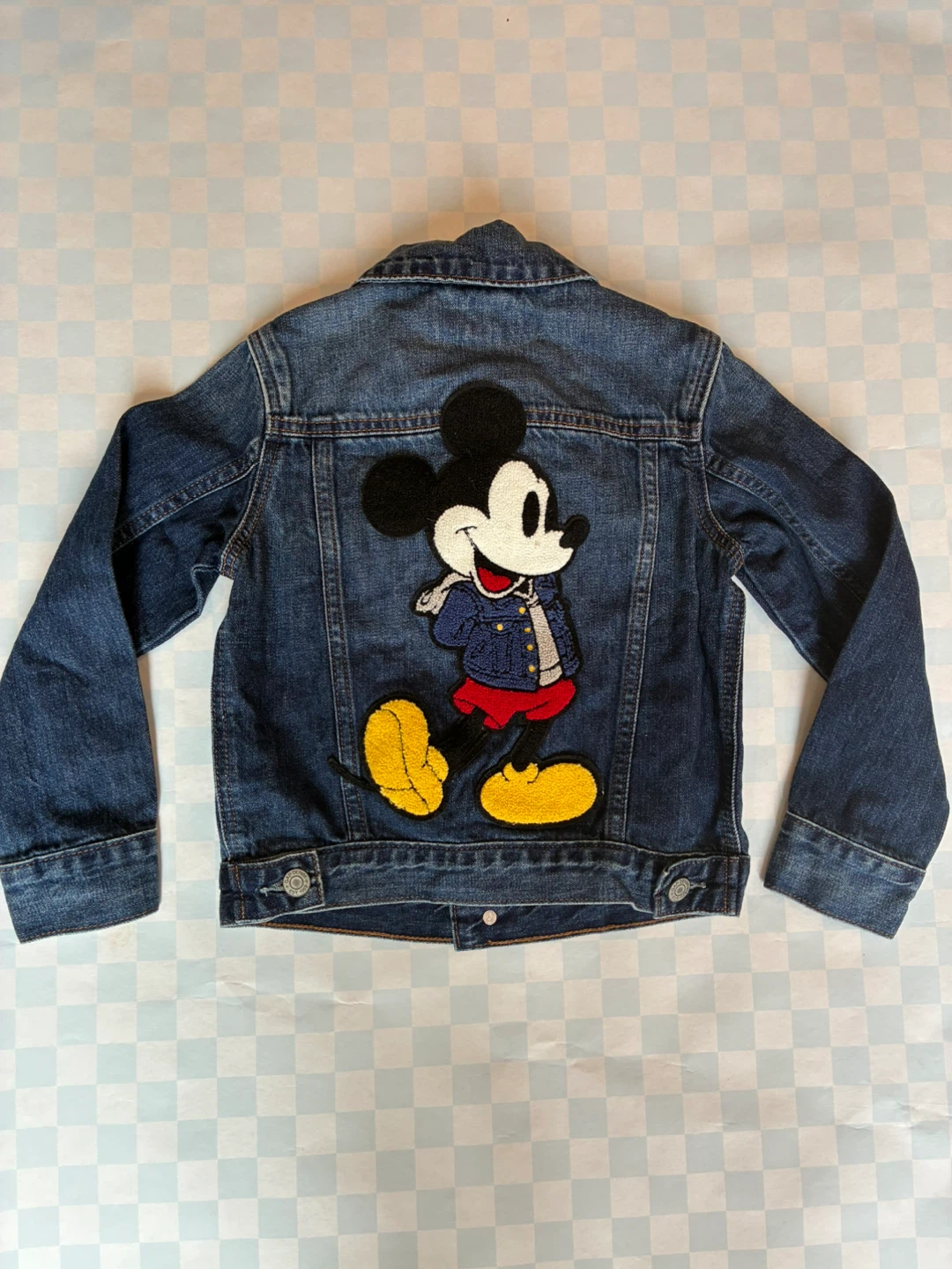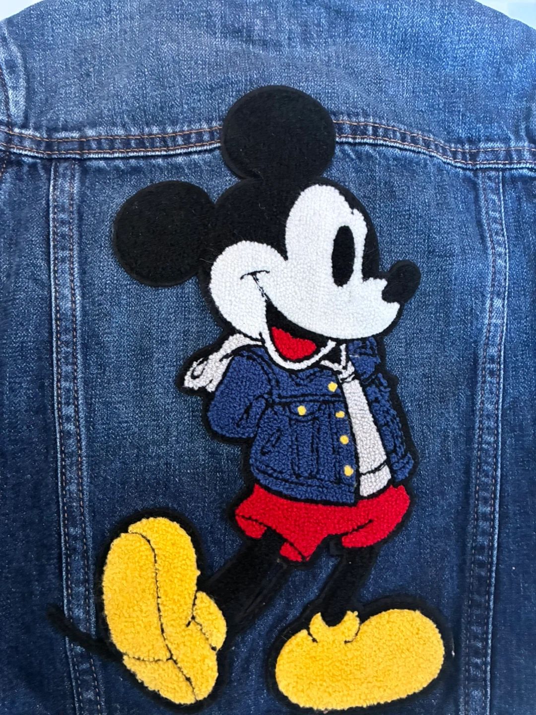 Selling a cute GAP denim jacket featuring a Mickey Mouse design on the back!