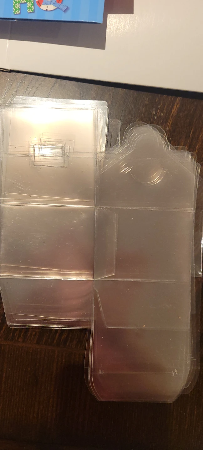 Selling a stack of clear plastic favour boxes. Great for parties, weddings, or any special occasion where you need to package small gifts or treats