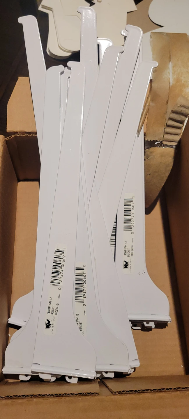 Selling a set of 15 KV 180HP WH 12 shelf brackets! They are white and made in the USA. Perfect for adding some extra shelving to your home or office