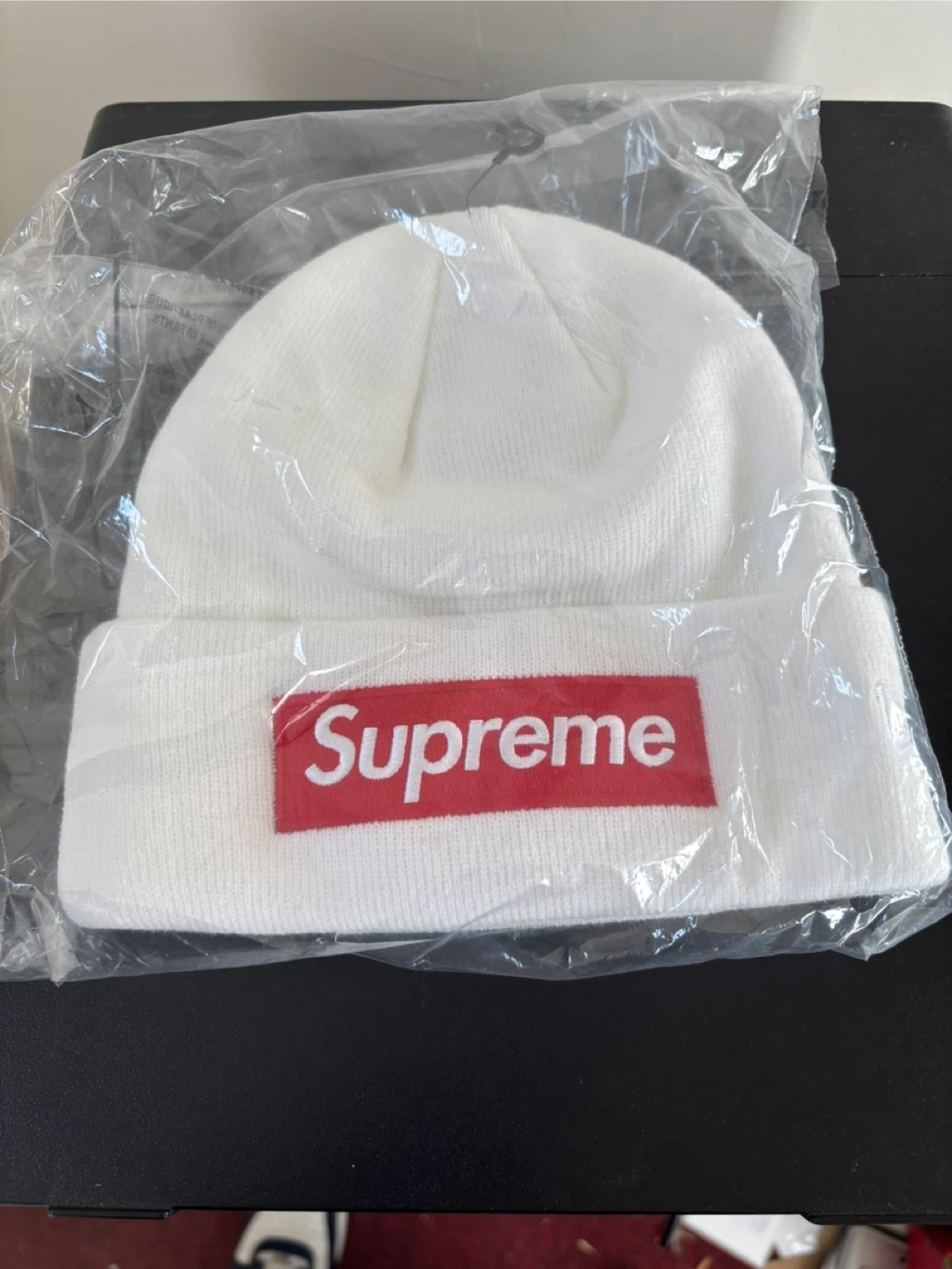 Selling a brand new Supreme beanie in white! It's still in the original packaging. Feel free to reach out if you're interested