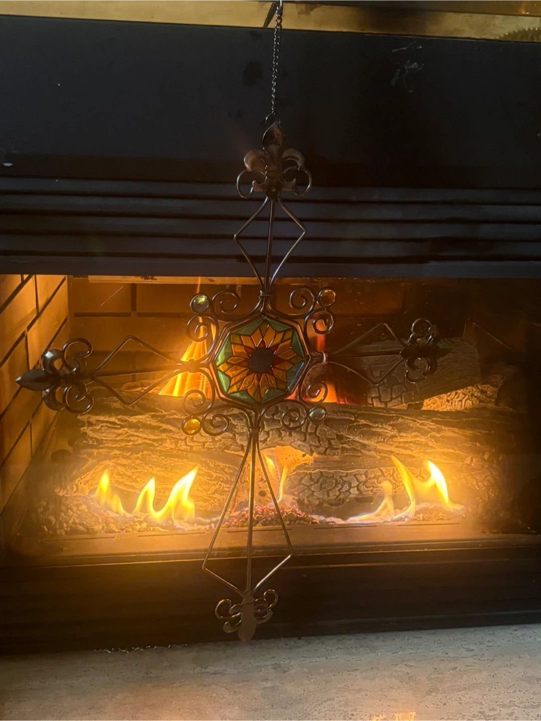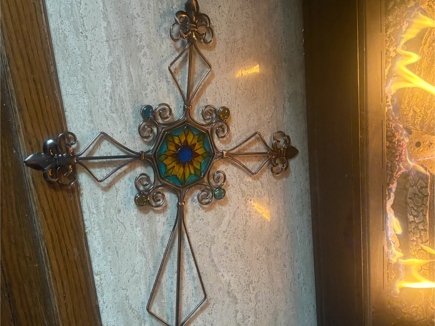 π₯ This is a lovely metal wall cross, perfect for adding a unique touch to any room. It features a beautiful floral design in the center, with intricate metalwork throughout. It's in great condition and ready to be displayed in your home!