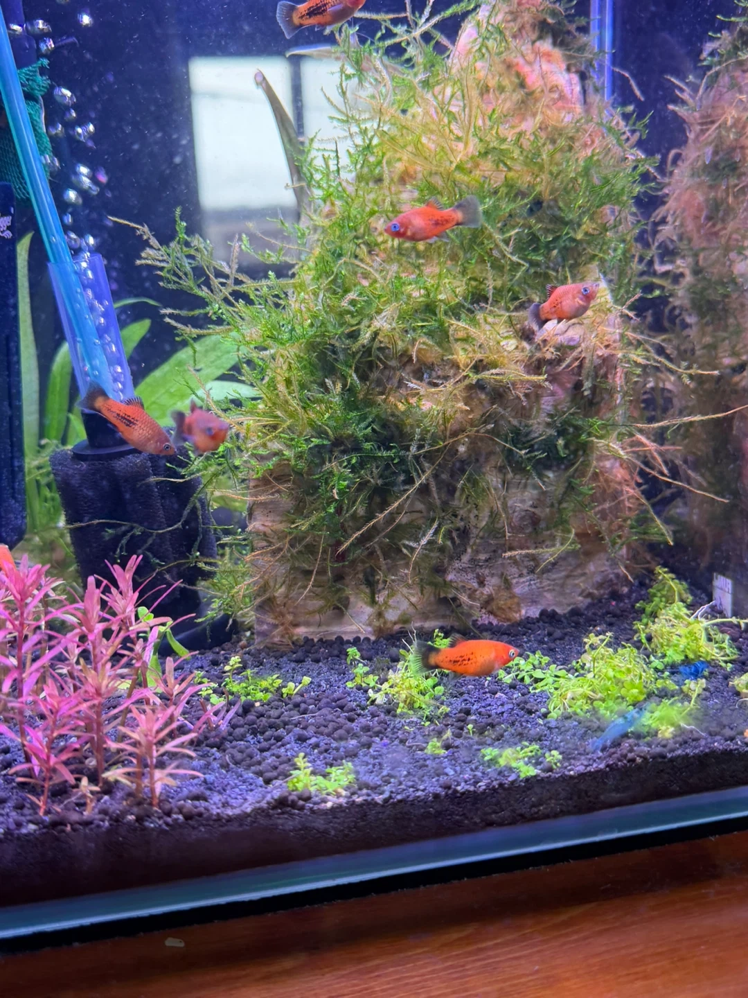 $10 for all 5 red wag platy mix fry! 2 are “check mark” because the mother was stressed at birth but they are full of personality, eat & swim well!