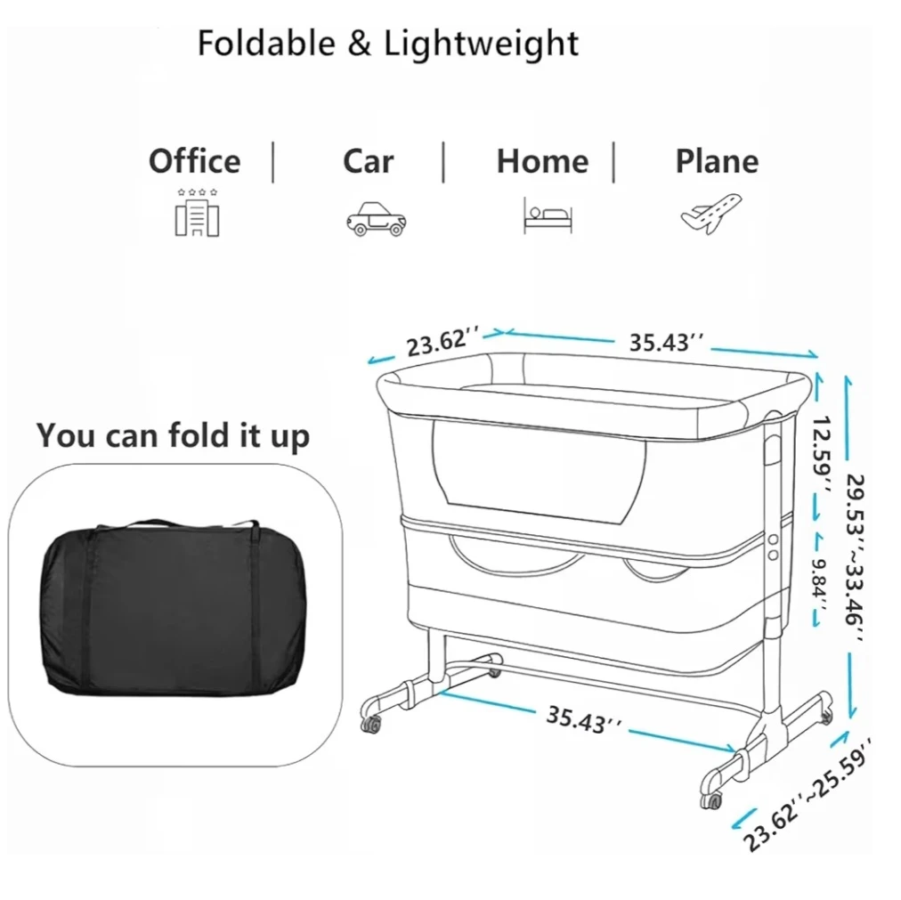 Soobaby Baby Crib Baby Bassinet Bedside Crib Adjustable Portable Bed for Infant Sleeping Bassinet Newborn Must Have Bed (Beige)