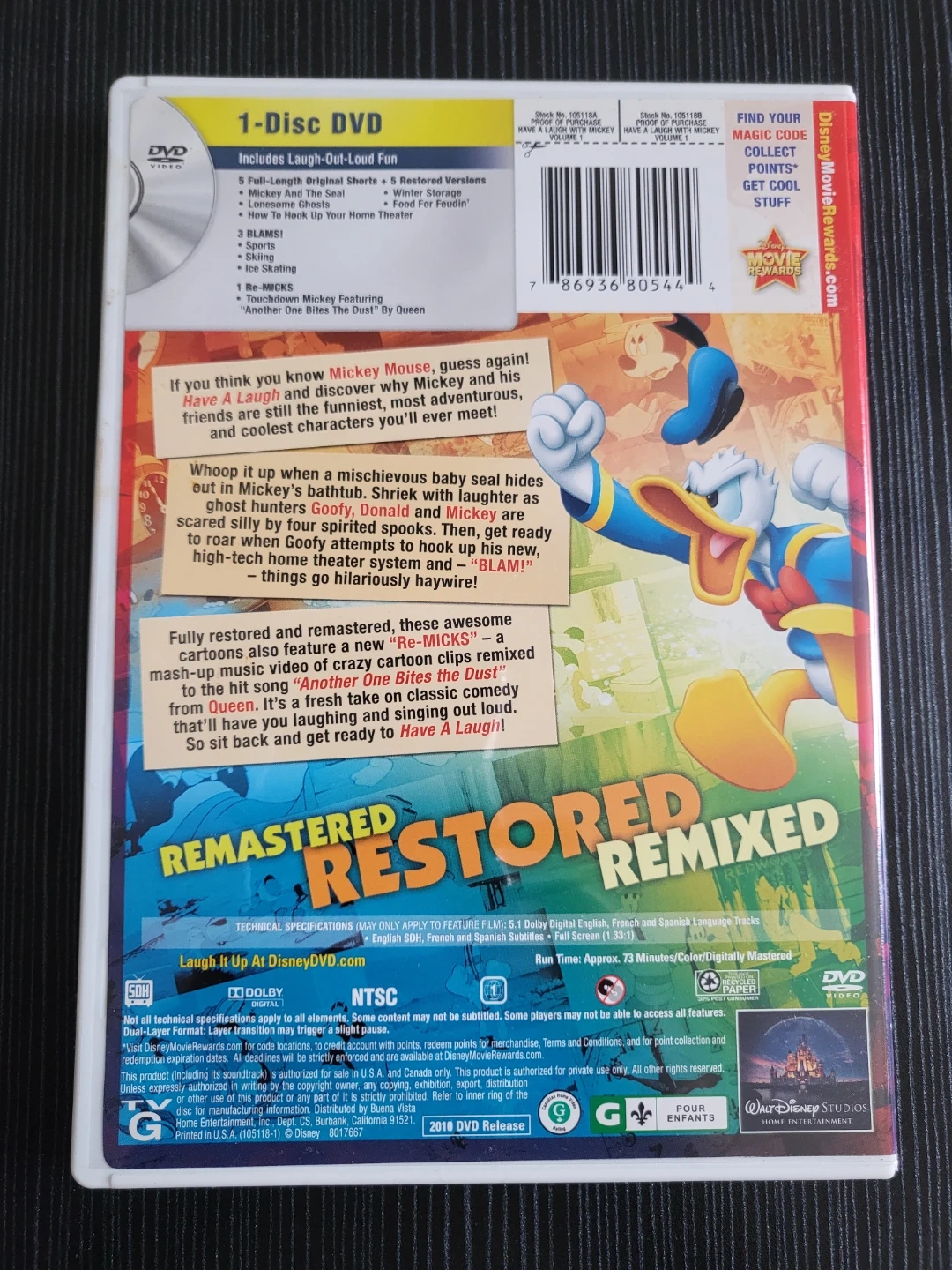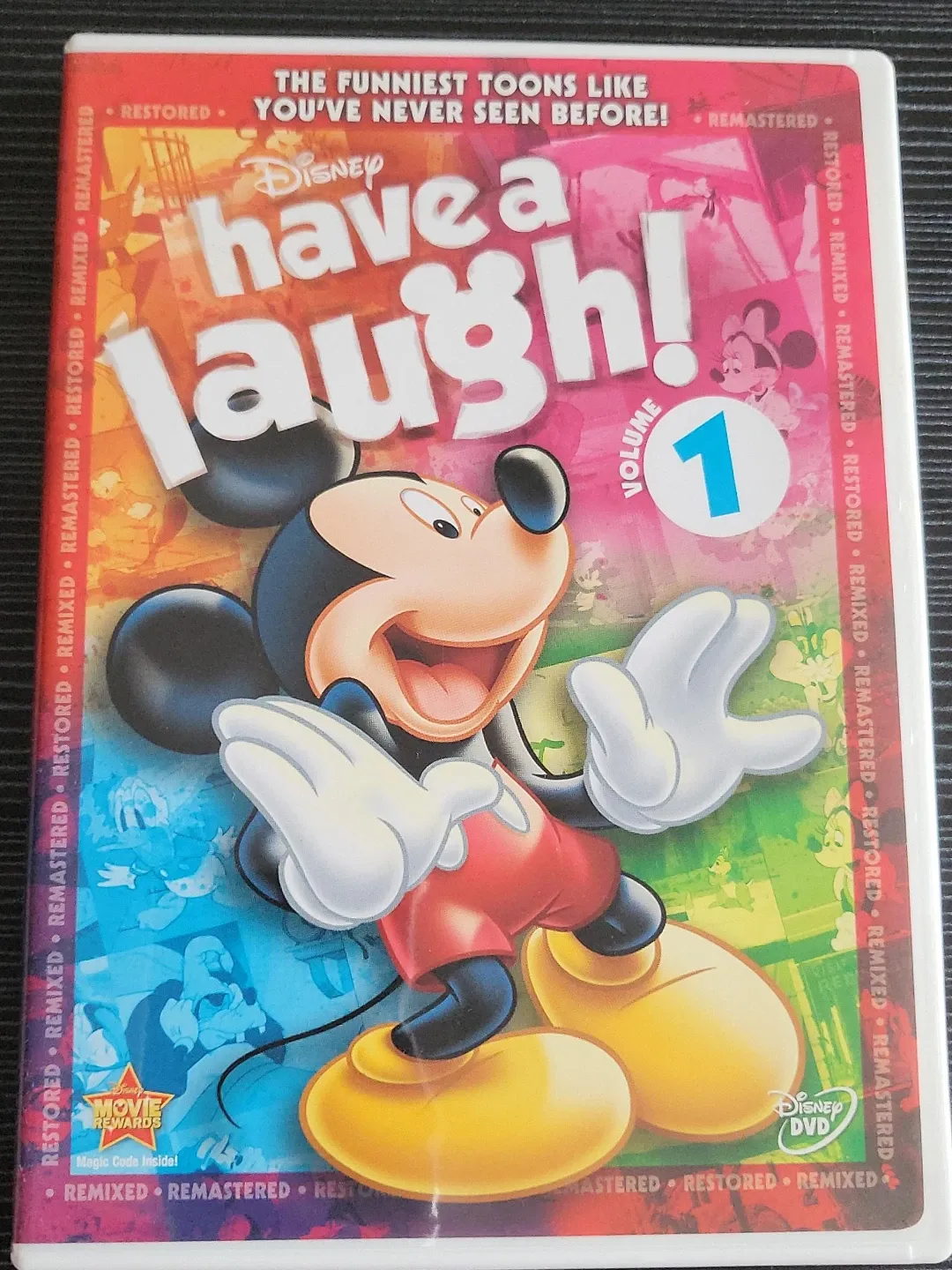Selling Disney Have a Laugh! Volume 1 DVD. This DVD includes 5 full-length original shorts restored versions: Mickey and the Seal, Winter Storage, The Simple Things, How to Hook Up Your Home Theater, and Sports. It also features Touchdown Mickey.