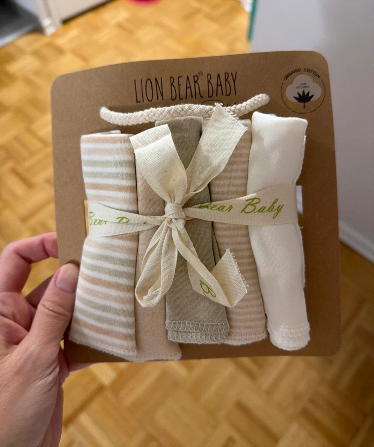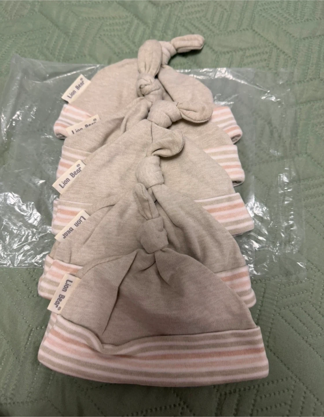 This is a new set of baby washcloths and hats from Lion Bear Baby!
