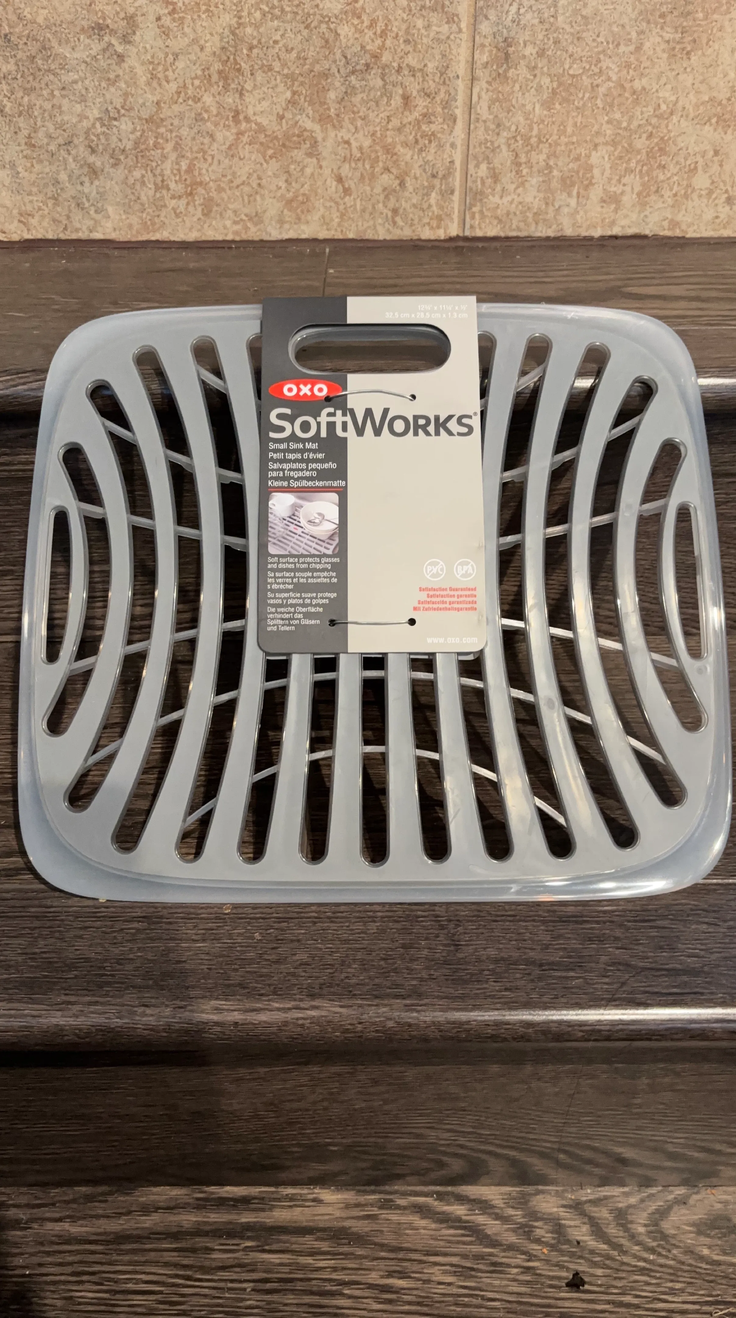 Selling an OXO SoftWorks small sink mat! This mat protects glasses and dishes from chipping, thanks to its soft surface. It measures 12 3/4" x 11 1/4" (32.5 cm x 28.5 cm x 1.3 cm). Satisfaction guaranteed!