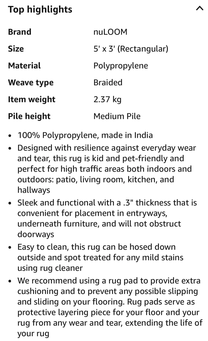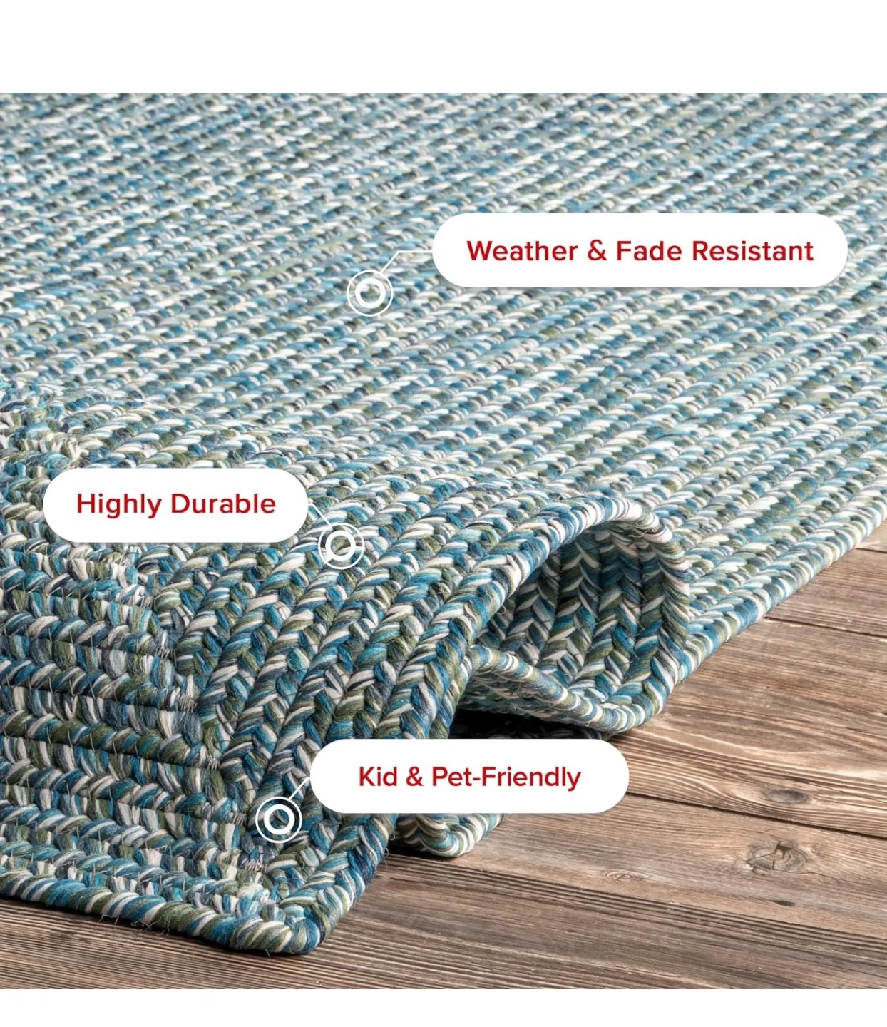 This braided area rug is perfect for both indoor and outdoor spaces! It's designed to be highly durable and weather/fade resistant, making it great for high-traffic areas or patios. Plus, it's kid and pet-friendly, so you don't have to worry about spills or messes. Easy to clean with vacuum, hose down, or spot clean
