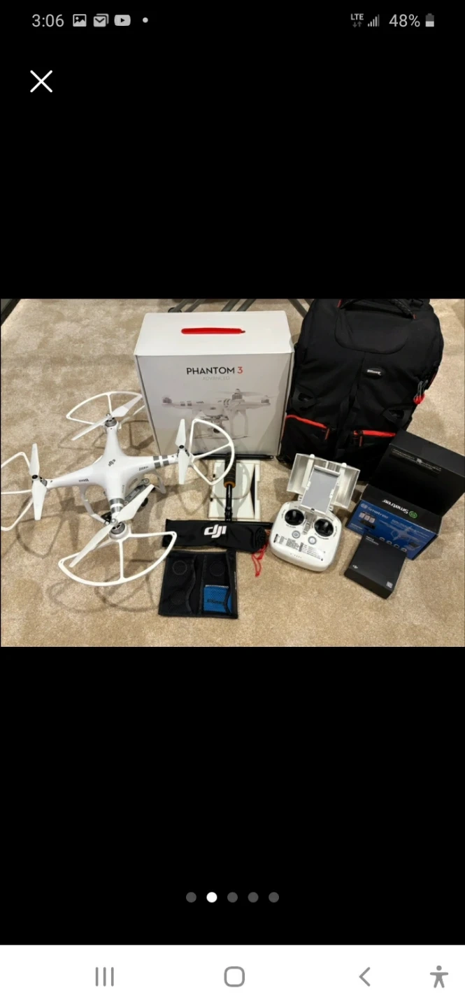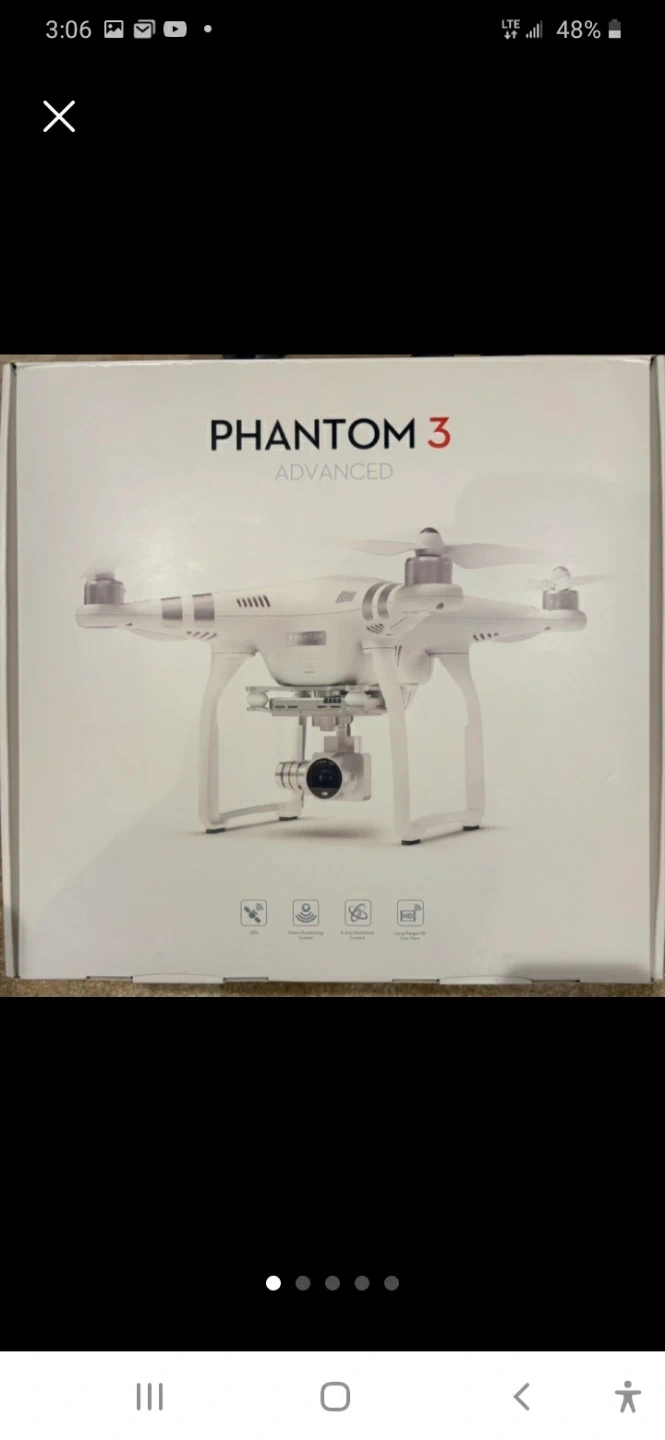 Selling a DJI Phantom 3 Advanced drone with a 4K camera and gimbal. It also includes the remote controller. The box is included, and you can see the drone and its components in the photos!Brand new in the box,never used mainly for law enforcement, fire rescue and bomb squad etc etc