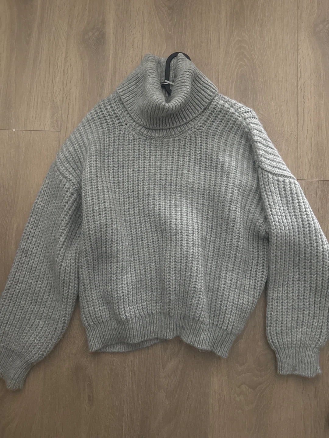 Cozy up in this lovely grey turtleneck sweater from Stradivarius! It's a size women’s medium and perfect for staying warm and stylish during the cooler months. Only worn a few times, Im selling since Im a student! I do discounts on bundles!!