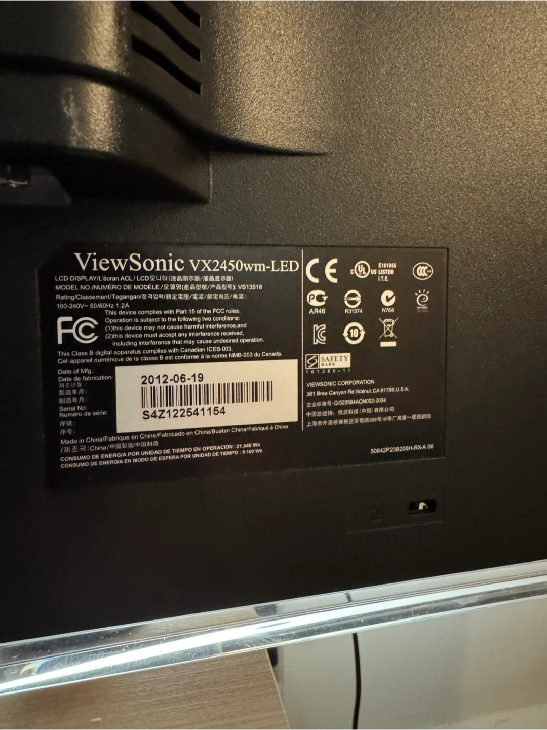 Selling a ViewSonic VX2450wm-LED LCD monitor. It's in great shape and ready for a new setup! It's a 24-inch display that would be perfect for home or office use