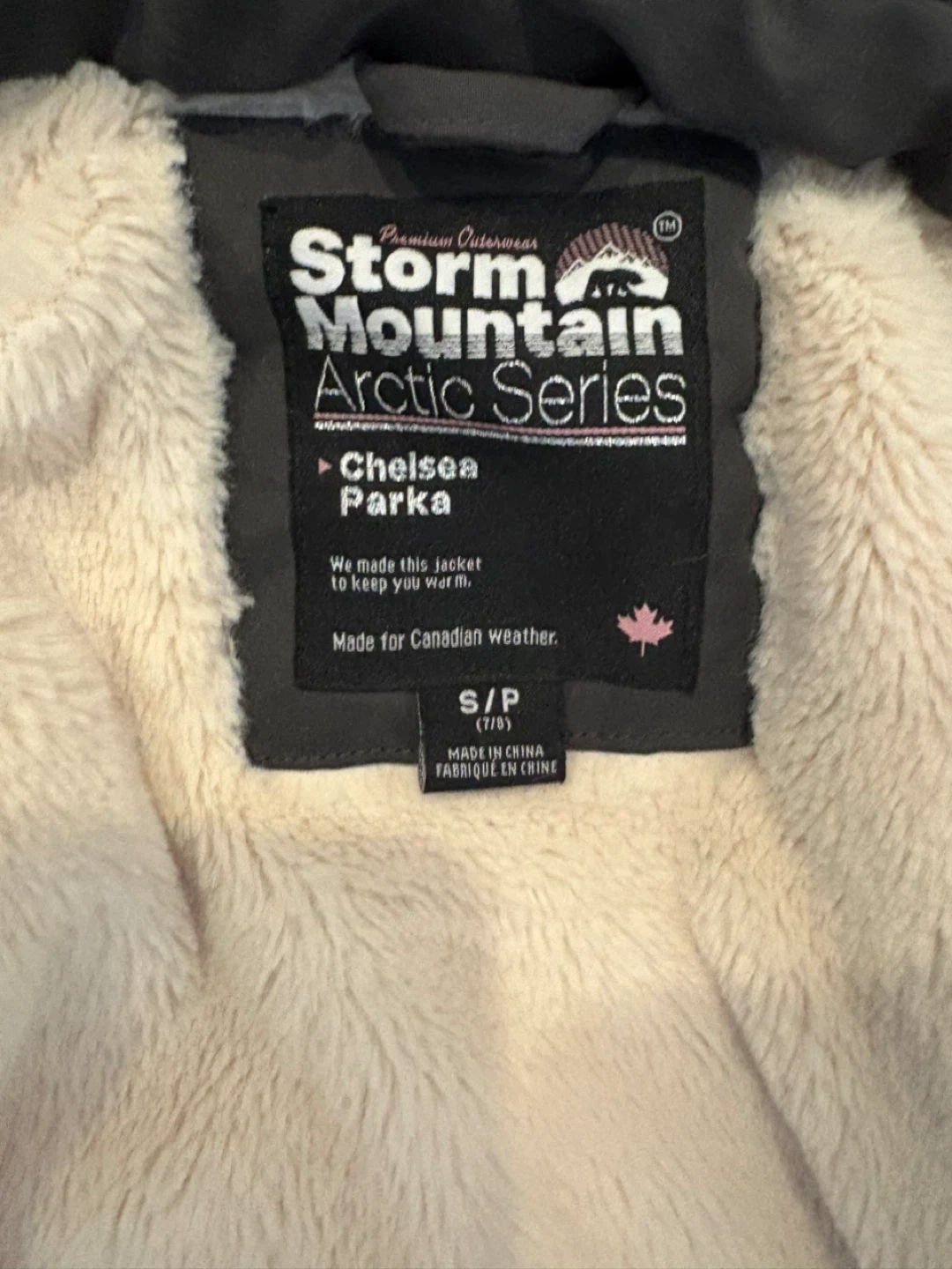 Storm Mountain Arctic Series Chelsea Parka, size S/P (7/8). Made for Canadian weather, this parka is designed to keep you warm! It has a cozy, plush lining.
