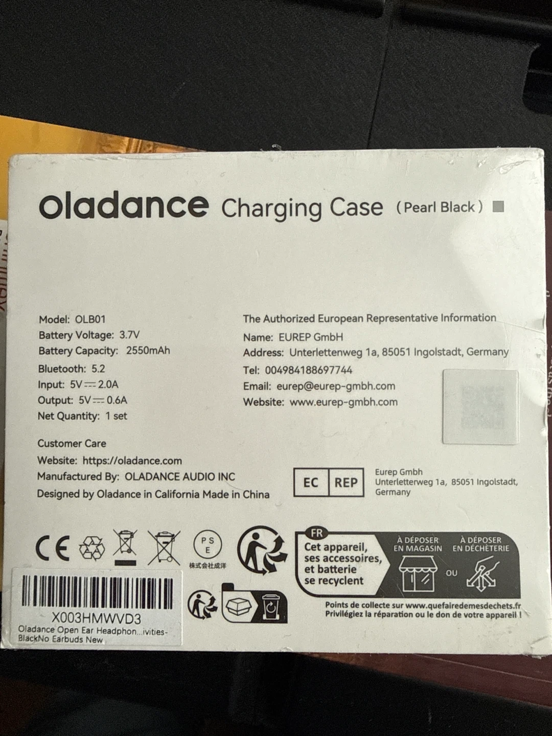 Selling a brand new Oladance Charging Case in Pearl Black. This case is designed for Oladance Open Ear Headphones.