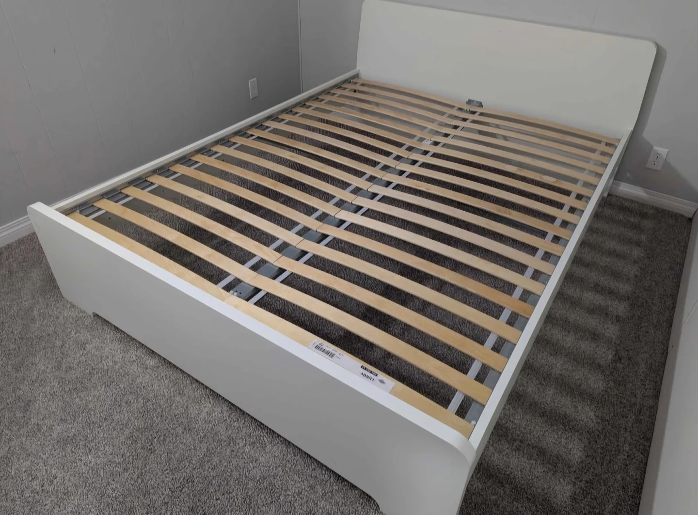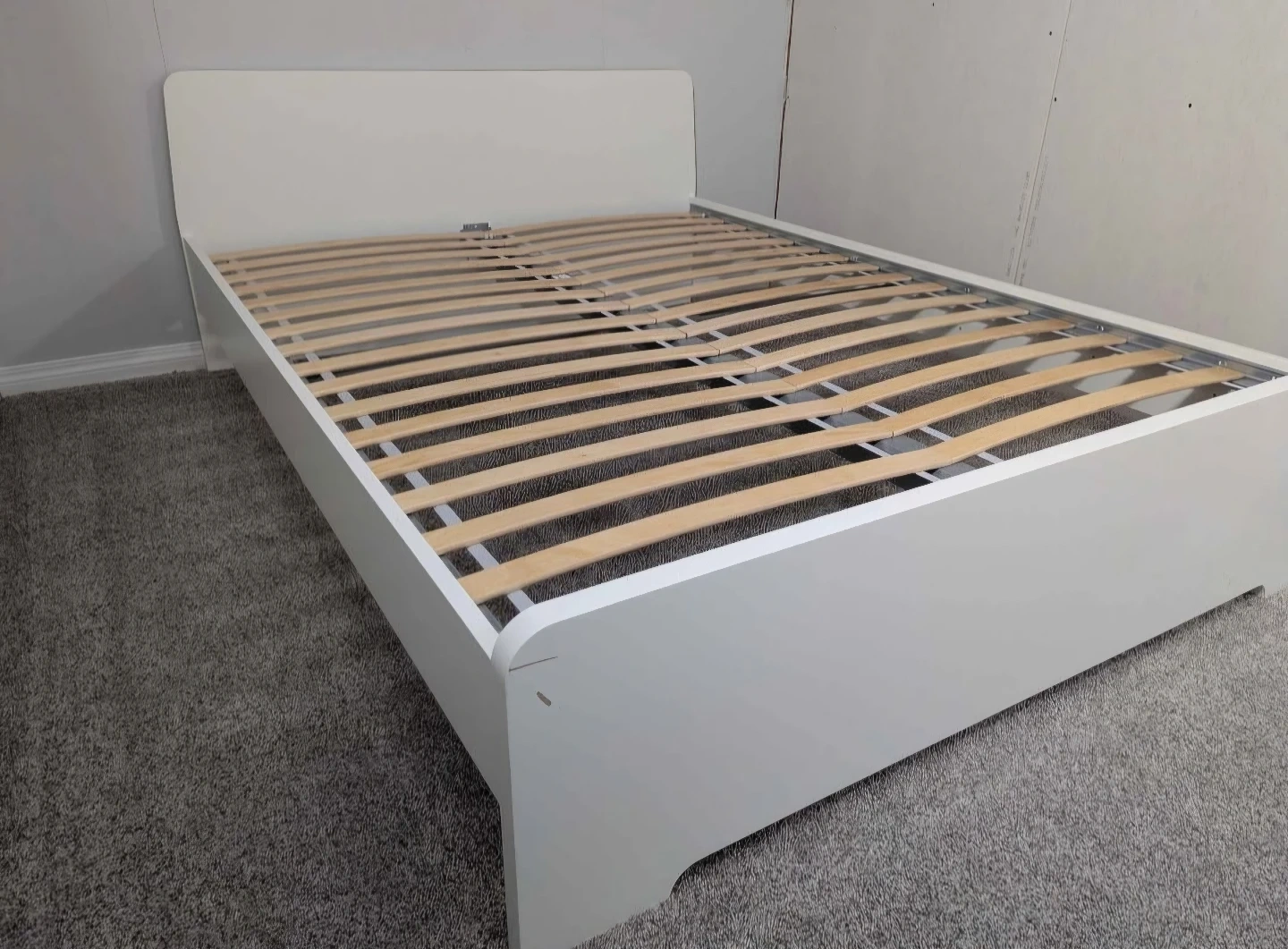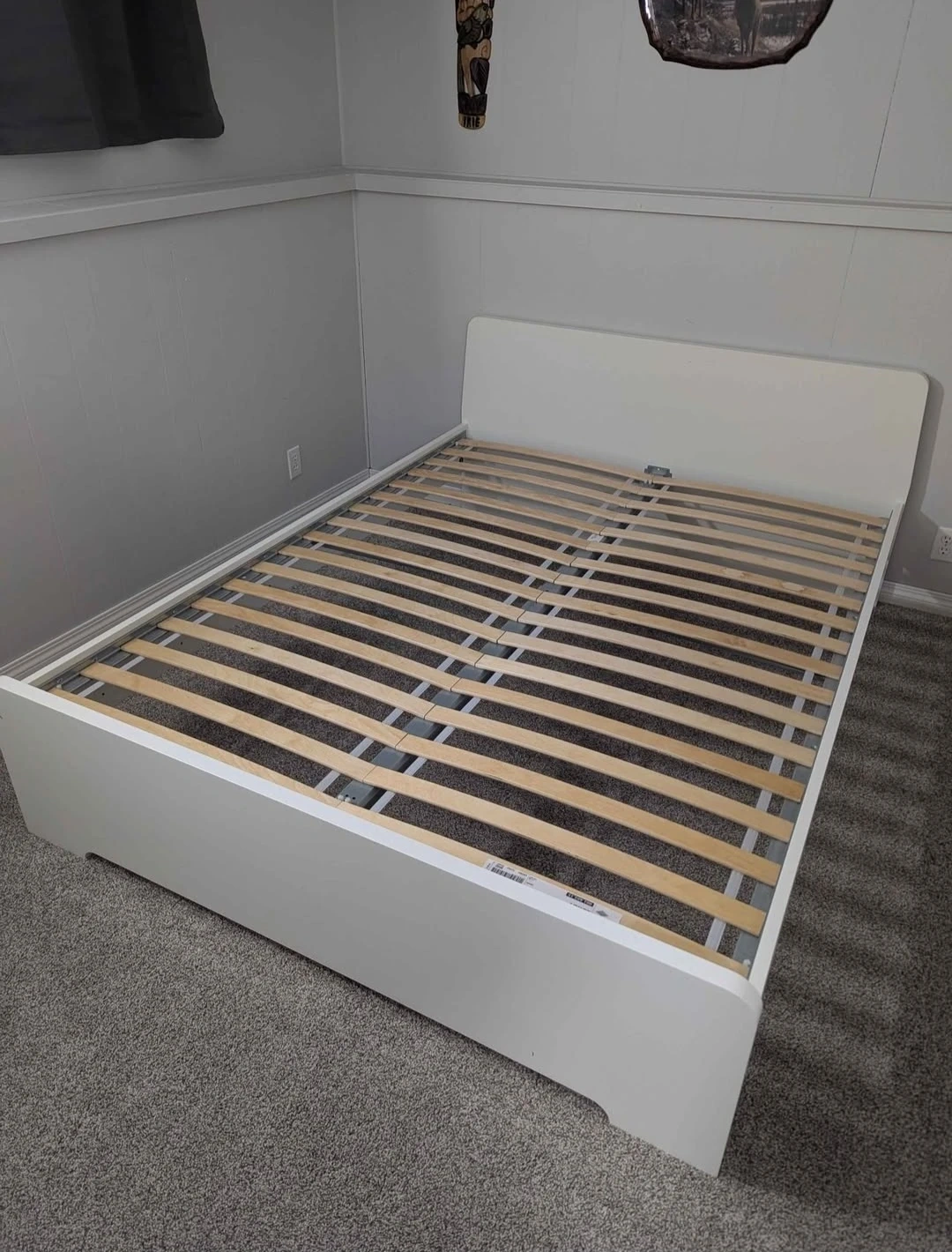 Queen bed frame for sale. Comes with wooden slats. Easy to assemble. Instructions mannual available.