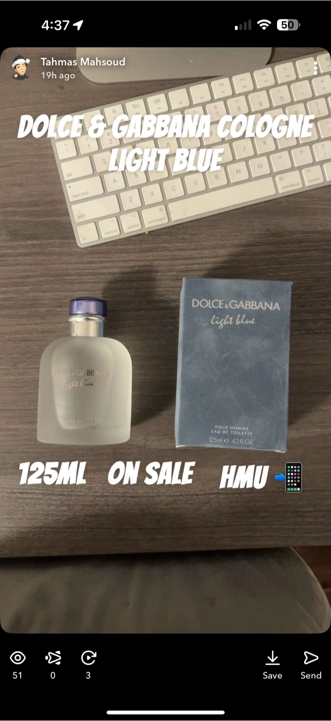 Selling a Dolce & Gabbana Light Blue cologne for men. It's a 125ml bottle of Eau de Toilette. The box is included!