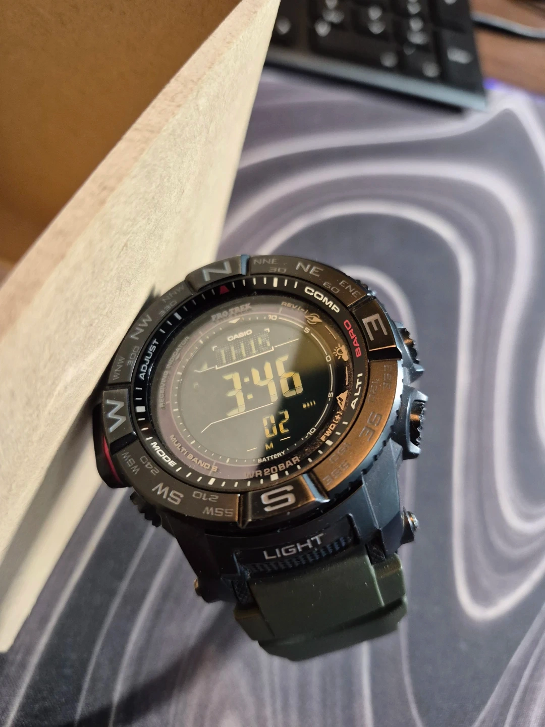 Selling a Casio Pro Trek PRW-3510Y watch. It's in great condition and ready for your next adventure! The watch is water-resistant up to 200 meters and features a stainless steel back. Comes with the original box. Could pass for new.