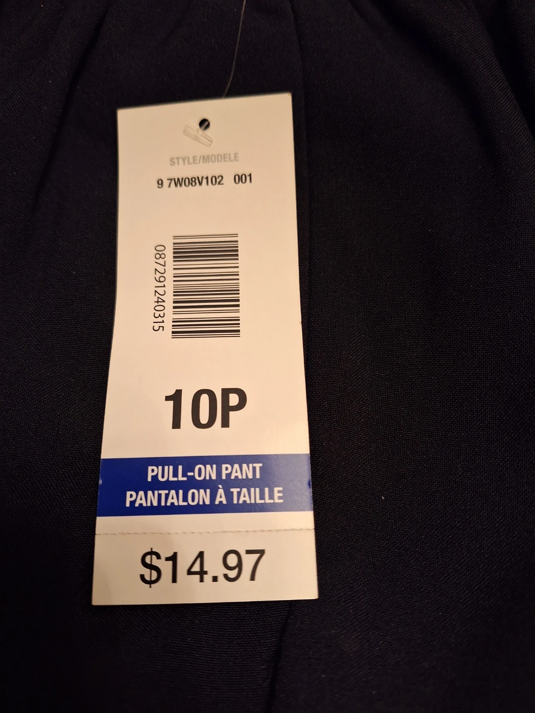 New with Tags Ladies Black Pull on Pants size 10 petite. Pants are 100% Polyester.