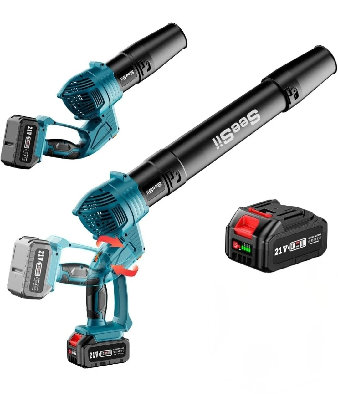 1) SeeSii Leaf Blower Cordless with 1* 4.0Ah Batteries and Charger,5 Speed Mode Electric Rotatable Outdoor Blower for Lawn Care and Leaves Cleaning, Powerful and Lightweight for Yard, Patio, Garden, Grass