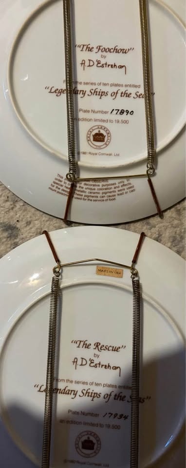 Set of 6 A.D Estrehan legendary ships of the seas plates