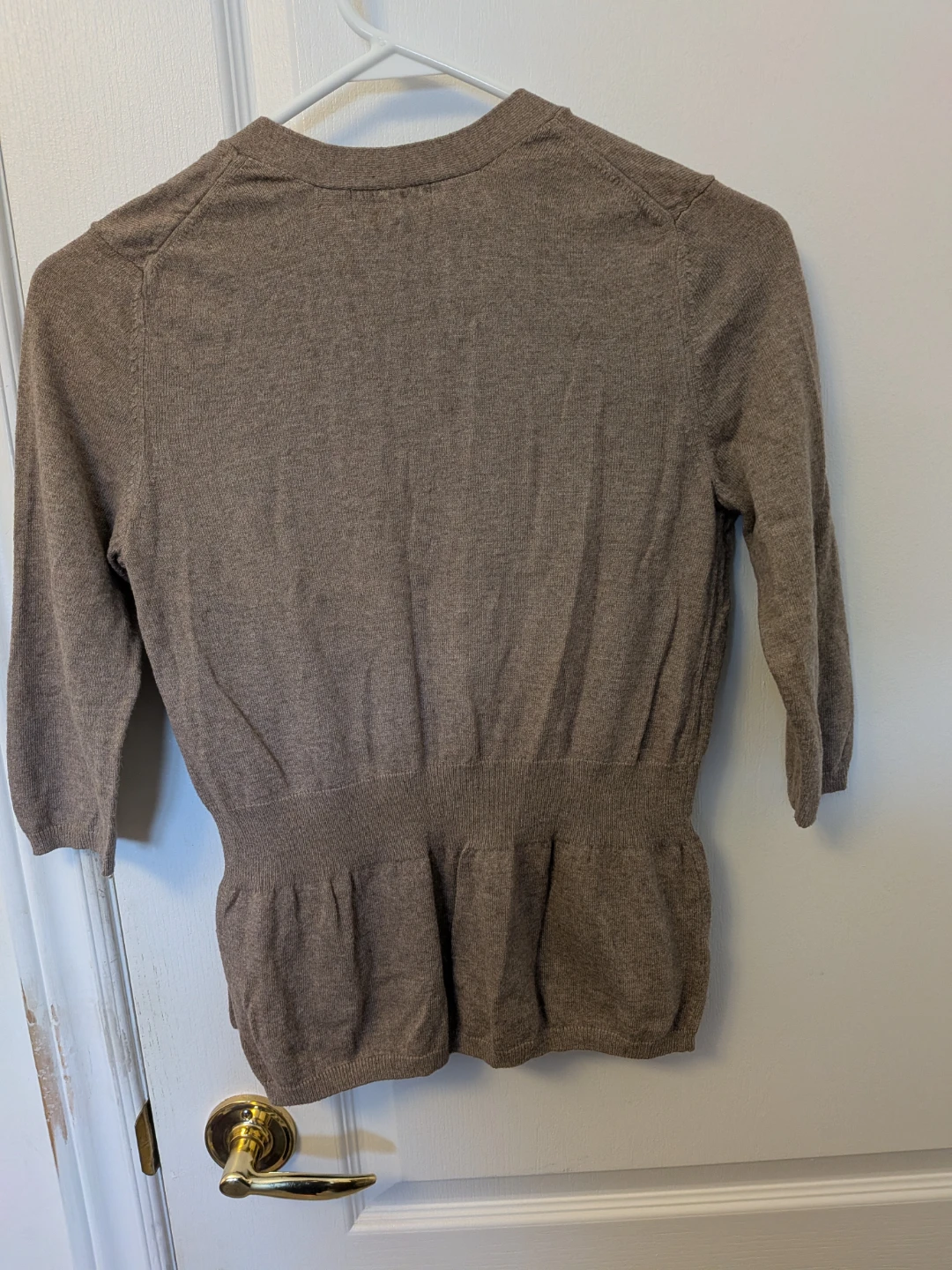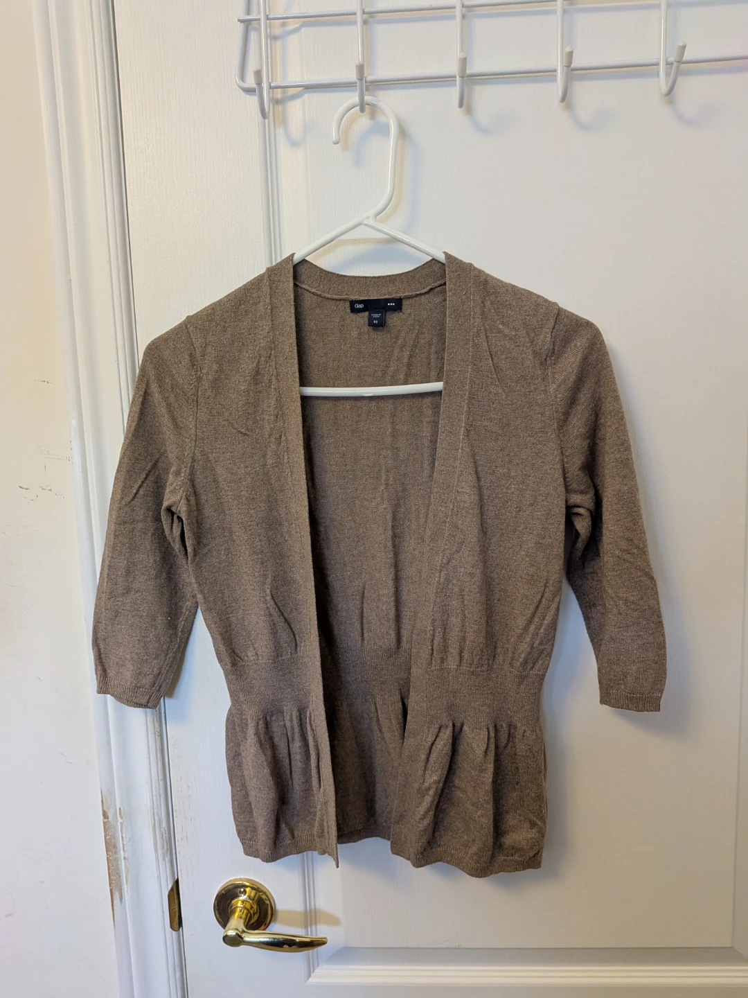 1 / 41 / 4Buy & SellGap XS Cardigan - TaupeGap XS Cardigan - Taupe$7Selling a cute Gap cardigan in size XS. It's a neutral taupe colour, perfect for layering! It's in great condition. 53% Cotton 40% Rayon 7% NylonConditionLike newSizeXSWHERE TO MEETLoblaws High Tech RoadView MapSELLERverifiedShoomiLangstaff1000+112 reviews0 chats·0 favorites·1 viewsSEND CHAT TO SELLERHi Shoomi! I’m interested in your listing.Hi Shoomi! I’m interested in your listing.Get the Karrot app to chatSign In to chat