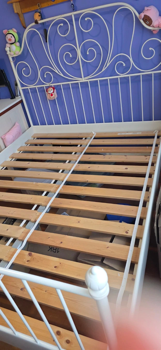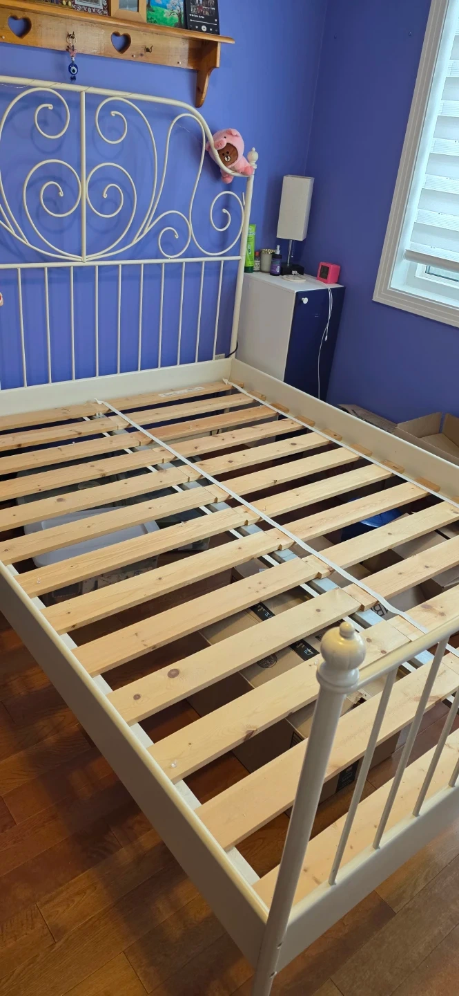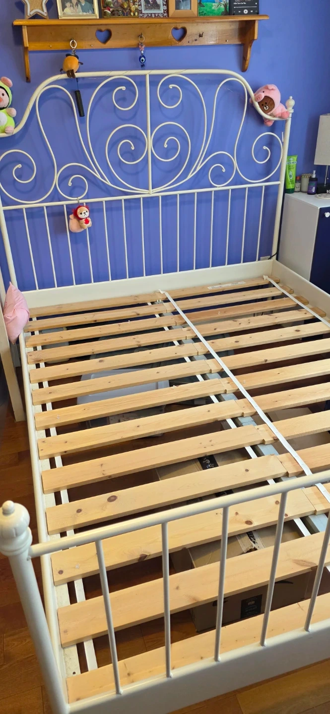 Selling a white IKEA bed frame. It's in good condition and ready for a new mattress and bedroom setup! Perfect for adding a touch of elegance to your space