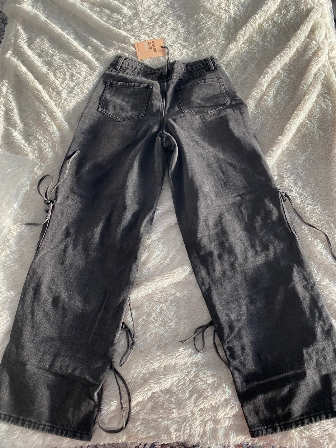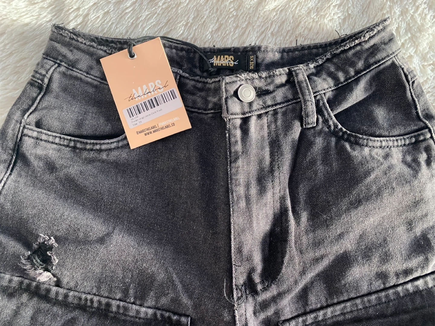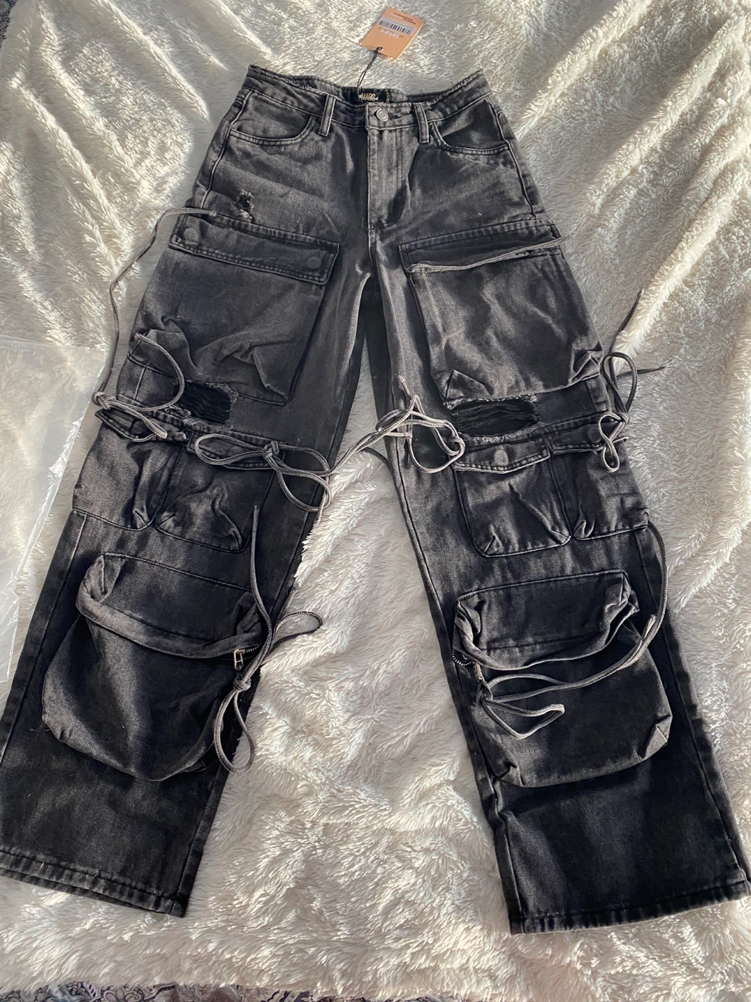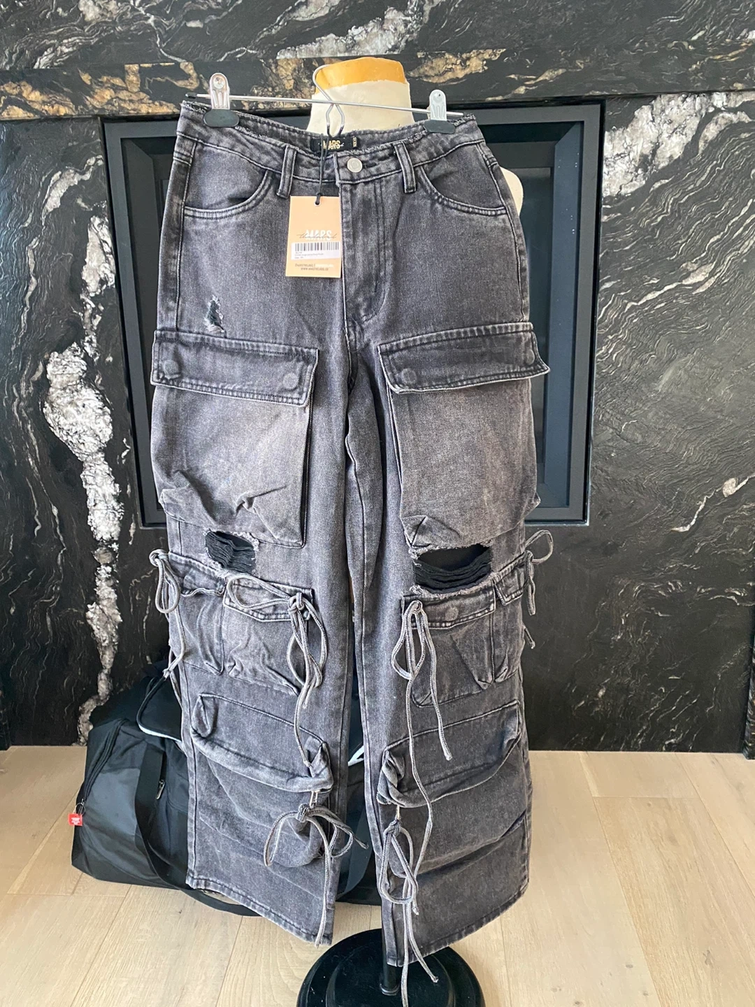 These are a pair of MARS the label cargo pants in size XS. They're a unique style with lots of pockets and tie detailing. Perfect for adding an edgy touch to your wardrobe!