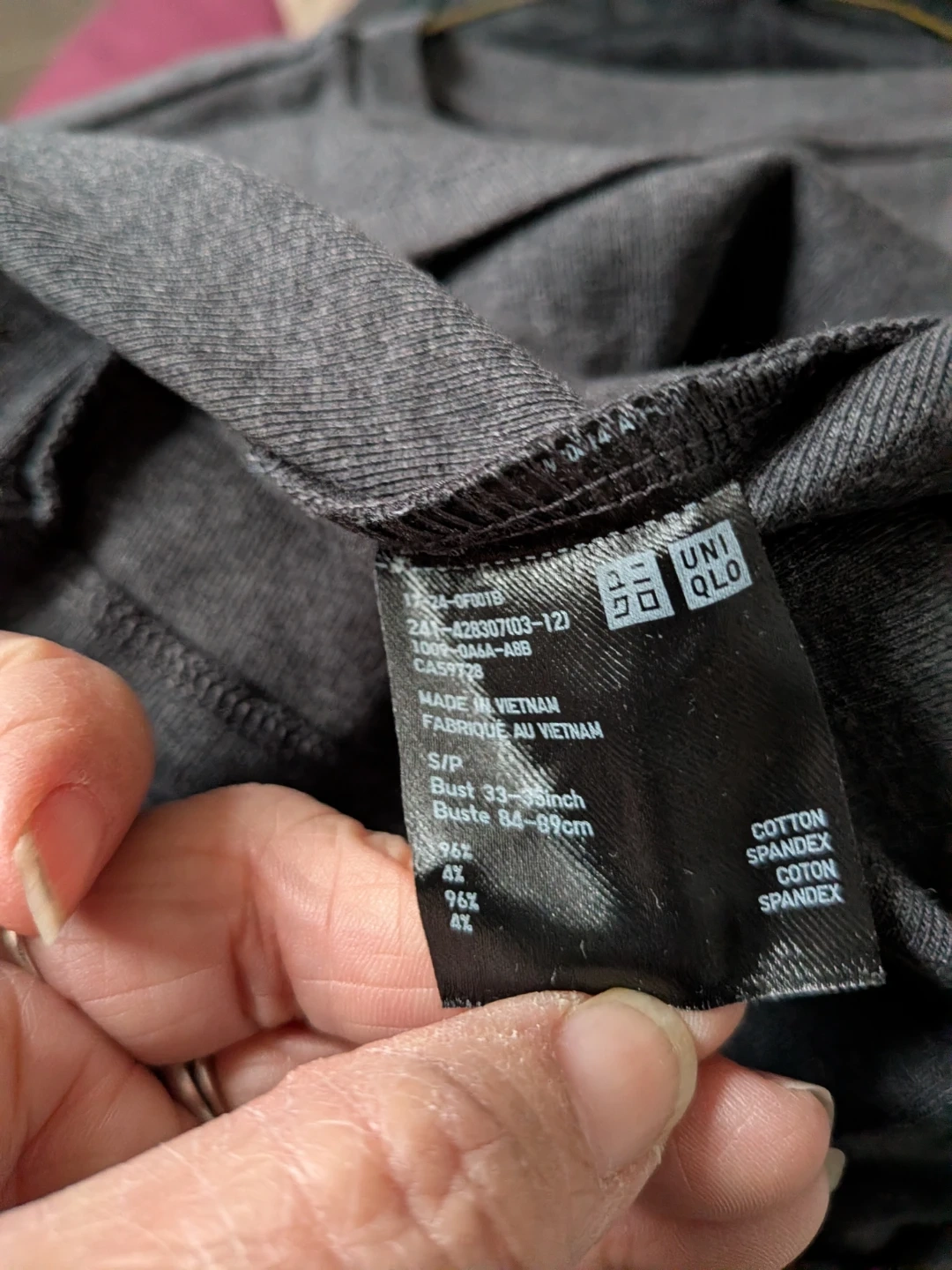 This is a brand new Uniqlo long sleeve top in dark gray, size small. It's made of 96% cotton and 4% spandex, so it's nice and comfy! The tag shows it was originally $14.90