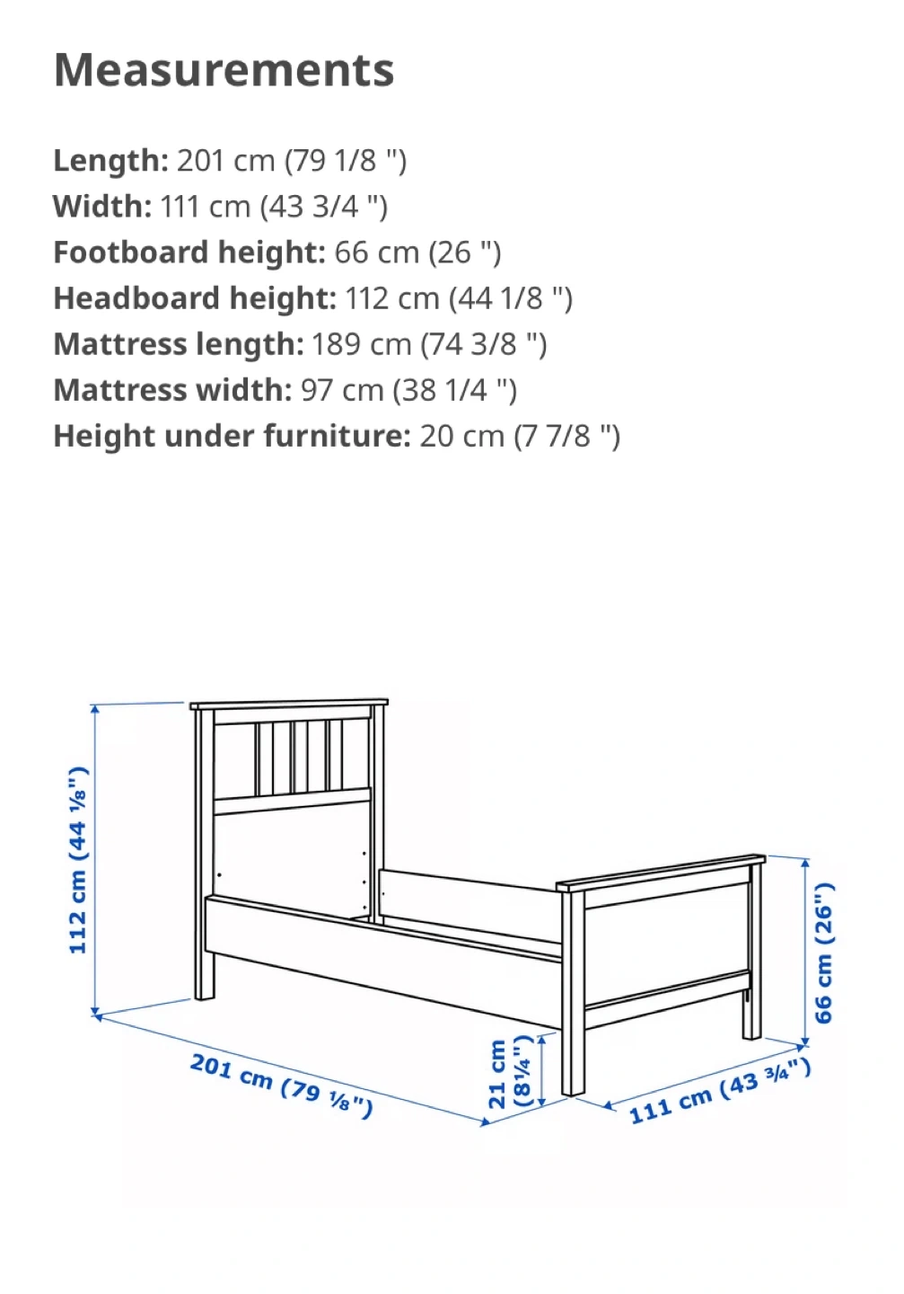 Bed frame only. Easy to fit in a child’s room, guest room, or smaller space.