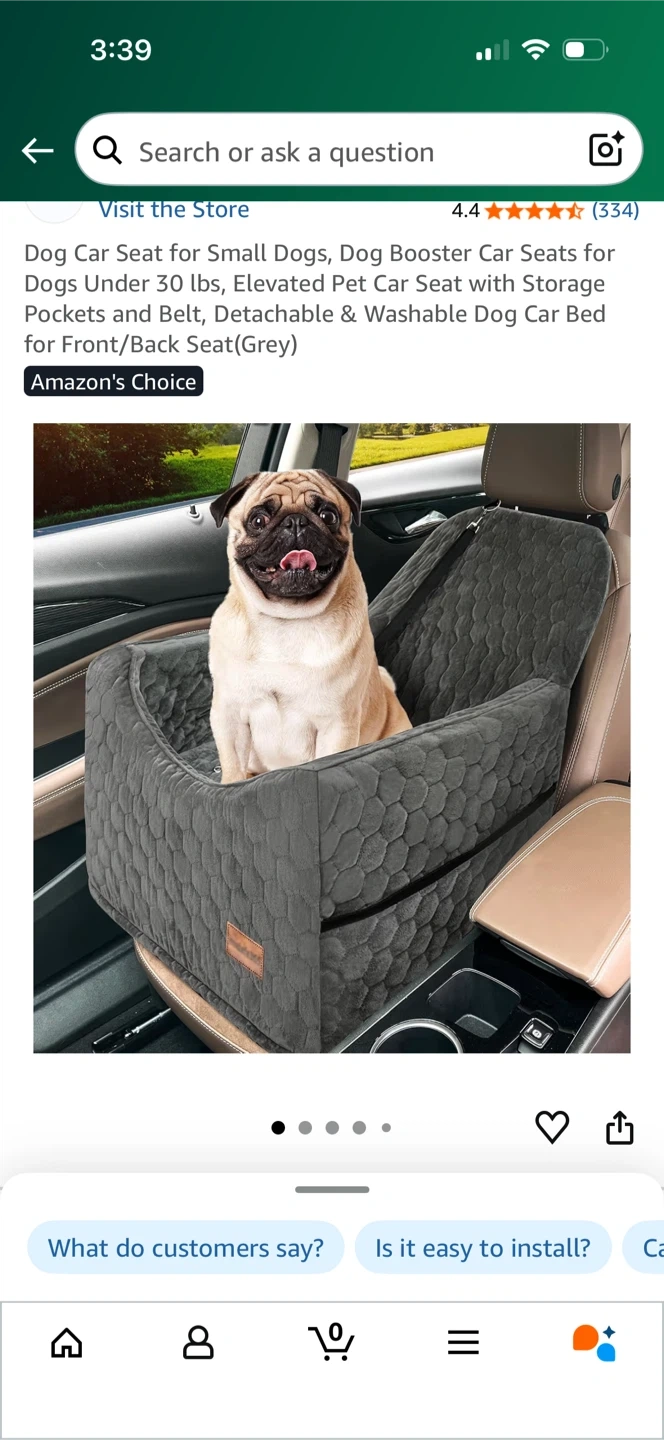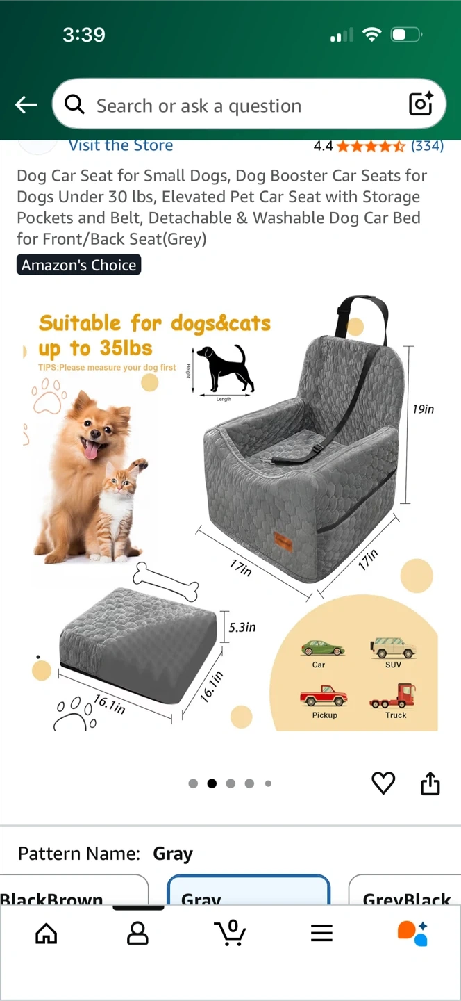 Keep your furry friend safe and comfy on car rides with this dog car seat! It's designed for small dogs and cats up to 30 lbs. The seat is elevated, giving your pet a better view, and it comes with storage pockets and a detachable, washable dog car bed. The dimensions are approximately 17in x 17in x 19in. Pattern name: Gray