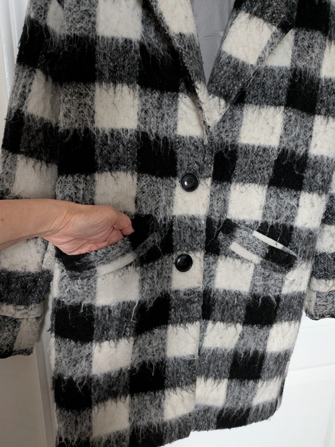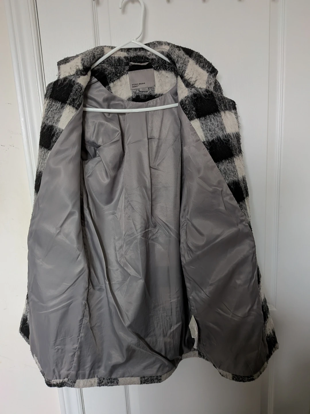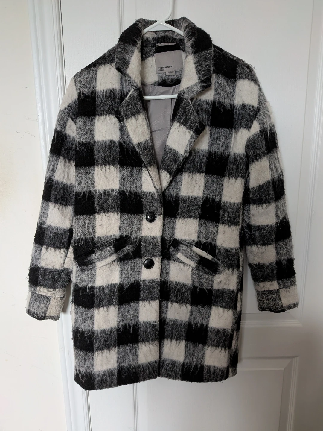 Selling a Vero Moda 3/4 jacket in a black and white plaid pattern. It's a size XS and is roomy to fit a sixe S and in great condition! Perfect for adding a stylish touch to your wardrobe.
