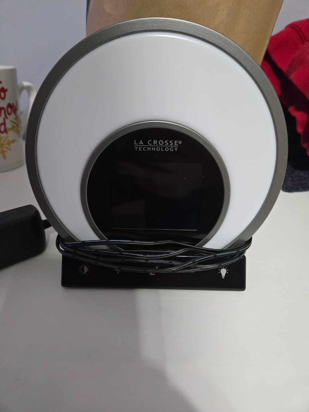 Selling a La Crosse Technology sunrise alarm clock! It's in great shape and ready to help you wake up gently. It features different light settings and alarm sounds to customize your wake-up experience