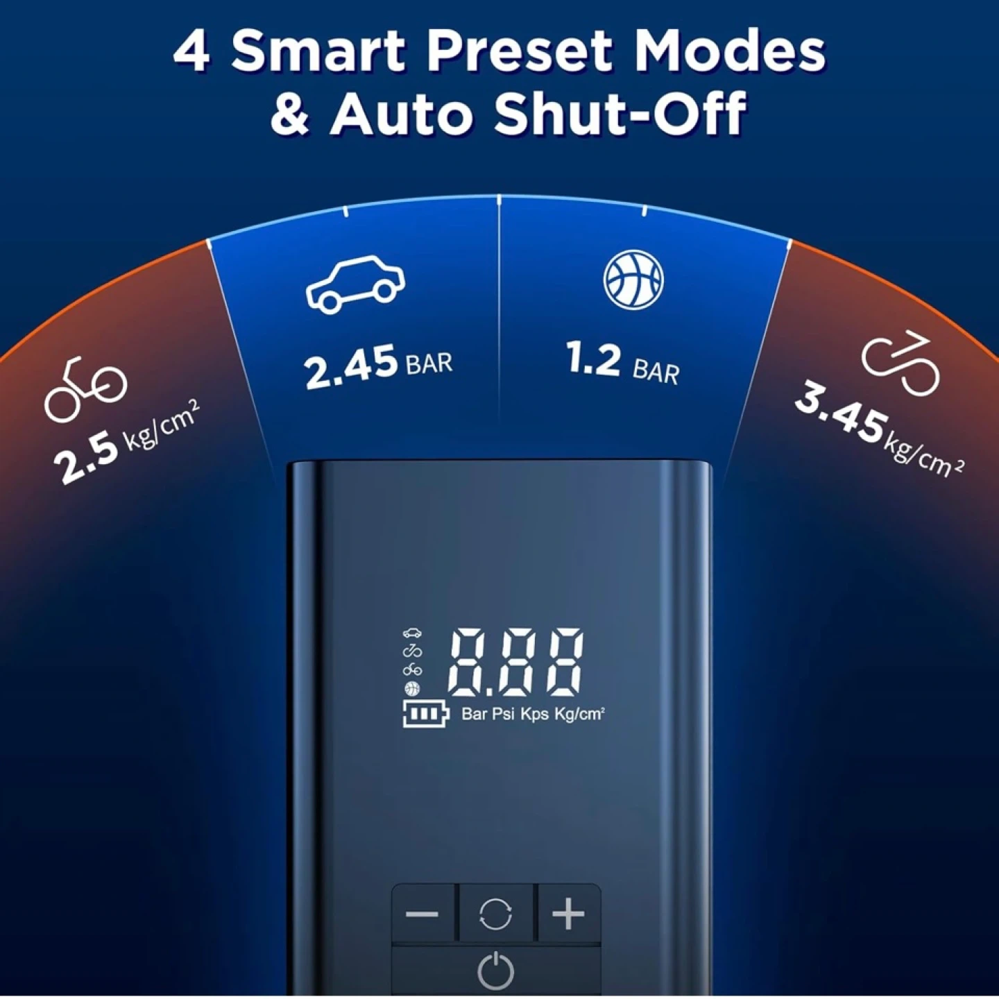 Tire Inflator Portable Air Compressor, 4 Smart Modes