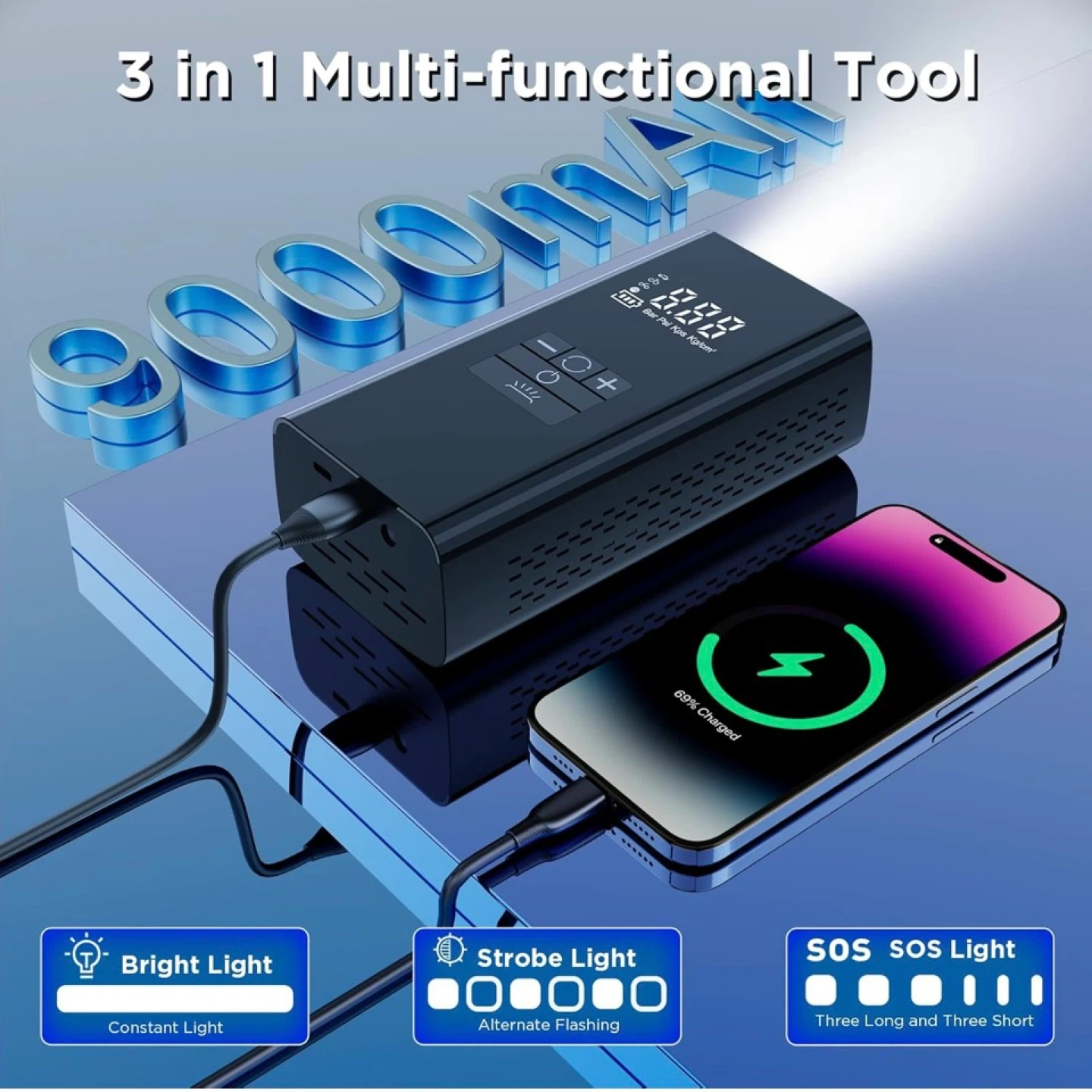 Tire Inflator Portable Air Compressor, 4 Smart Modes & Auto Shut Off Portable tire inflator,Tire Air Pump with Cigarette Lighter, 9000 mAh & 150PSI Tire Air Pump for Car Bike Motorcycle Ball