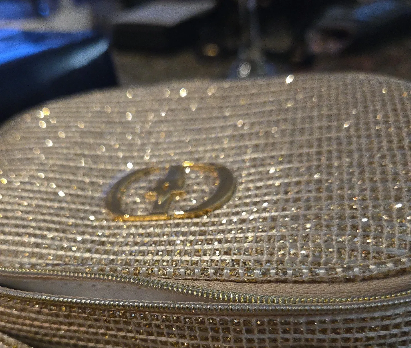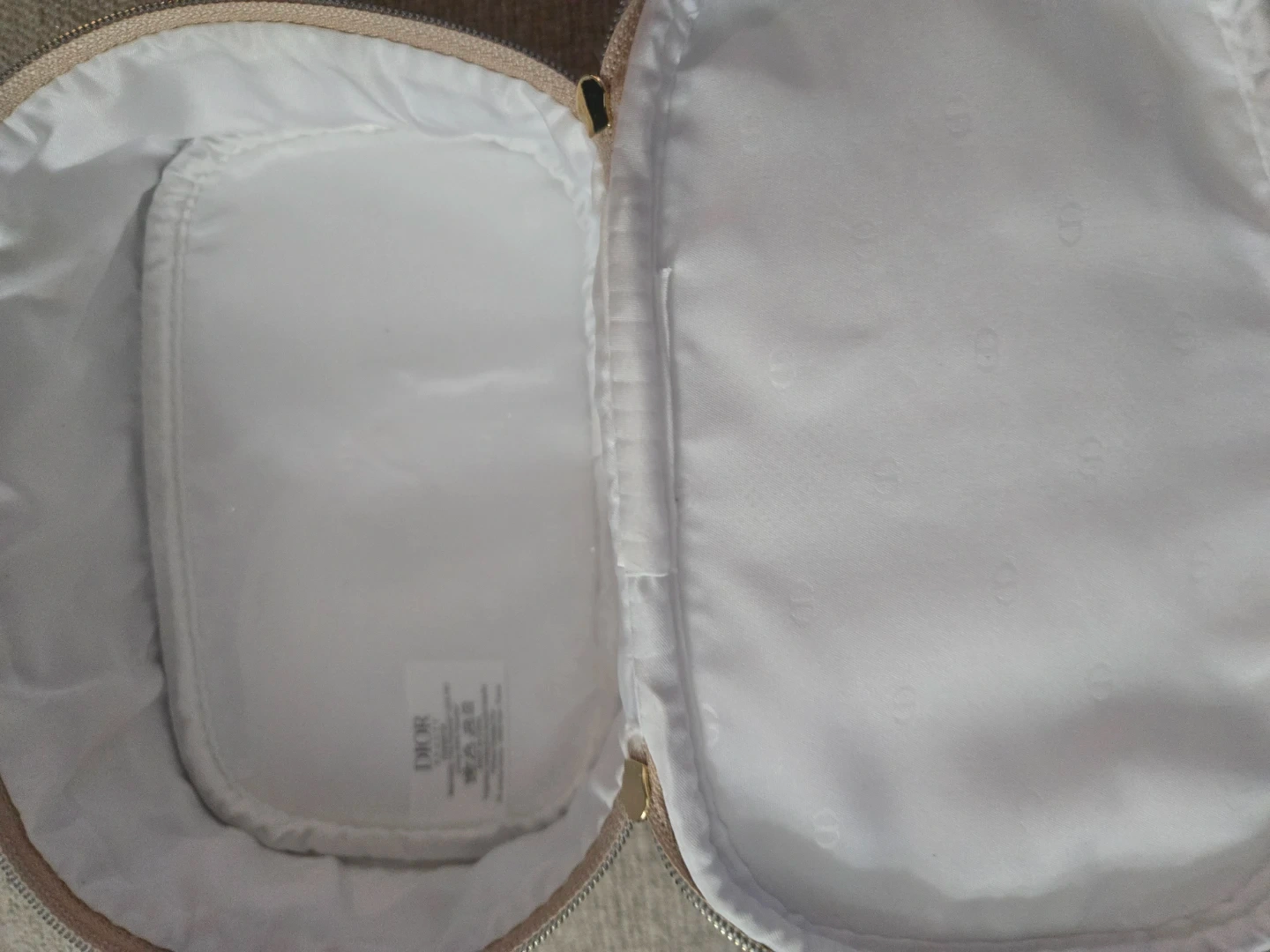 Selling a DIOR cosmetic pouch in gold! It's in great condition and perfect for storing your makeup or toiletries. The material has a lovely shimmer, and the interior is spacious. This clutch bag can be used for an evening out.