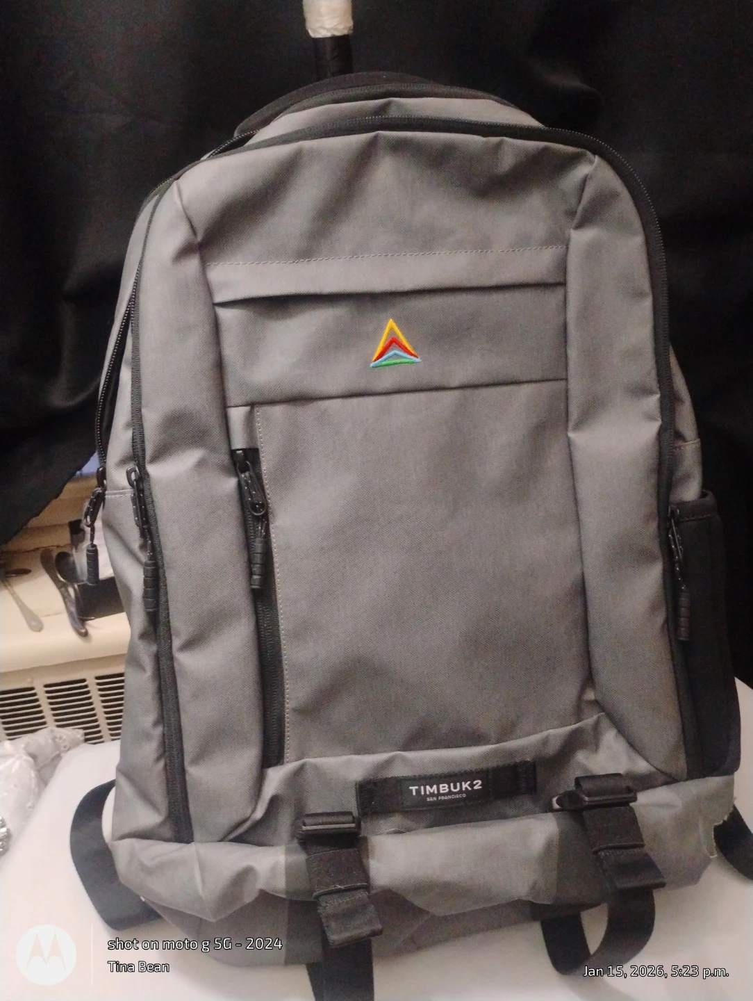 Selling a new Timbuk2 backpack It's a stylish and functional backpack perfect for everyday use or travel. The backpack features multiple compartments and pockets to keep your belongings organized. It is grey in colour.
